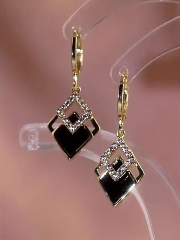 Elevate your vacation or party outfit with these exquisite French high end rhombus faux rhinestone inlaid earrings.