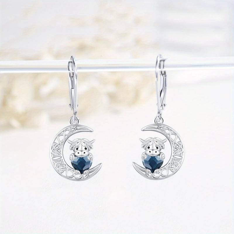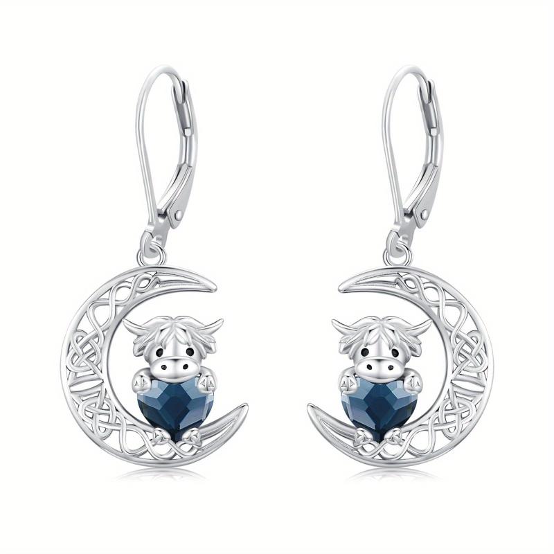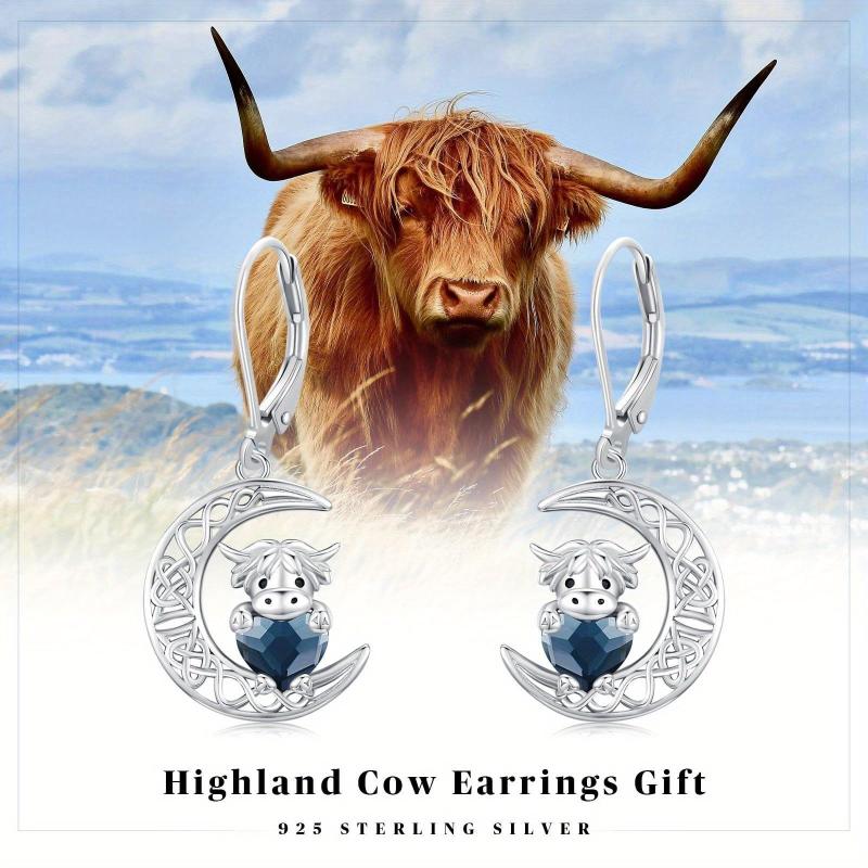 Adorn your ears with these charming Highland Cow earrings made of 925 sterling silver. The design features a Celtic moon leverback style for added elegance.
