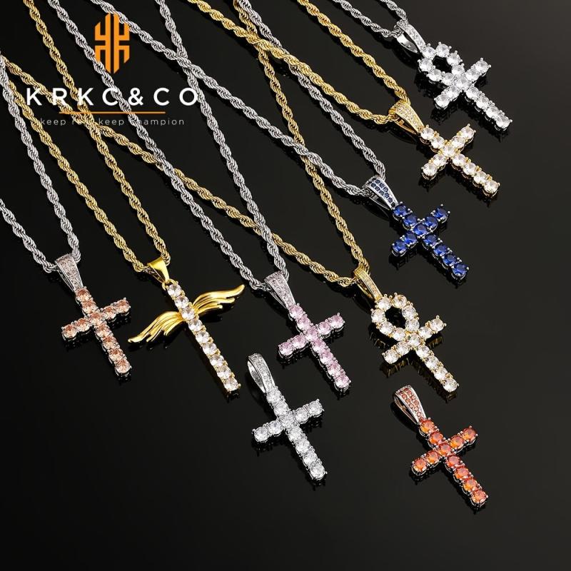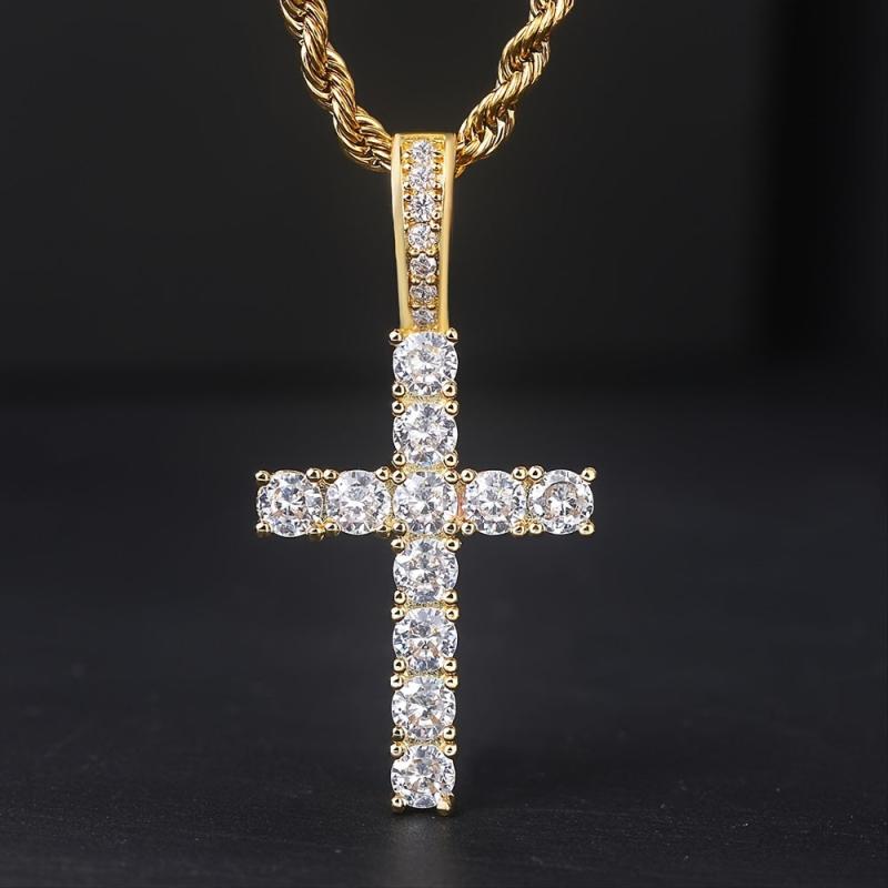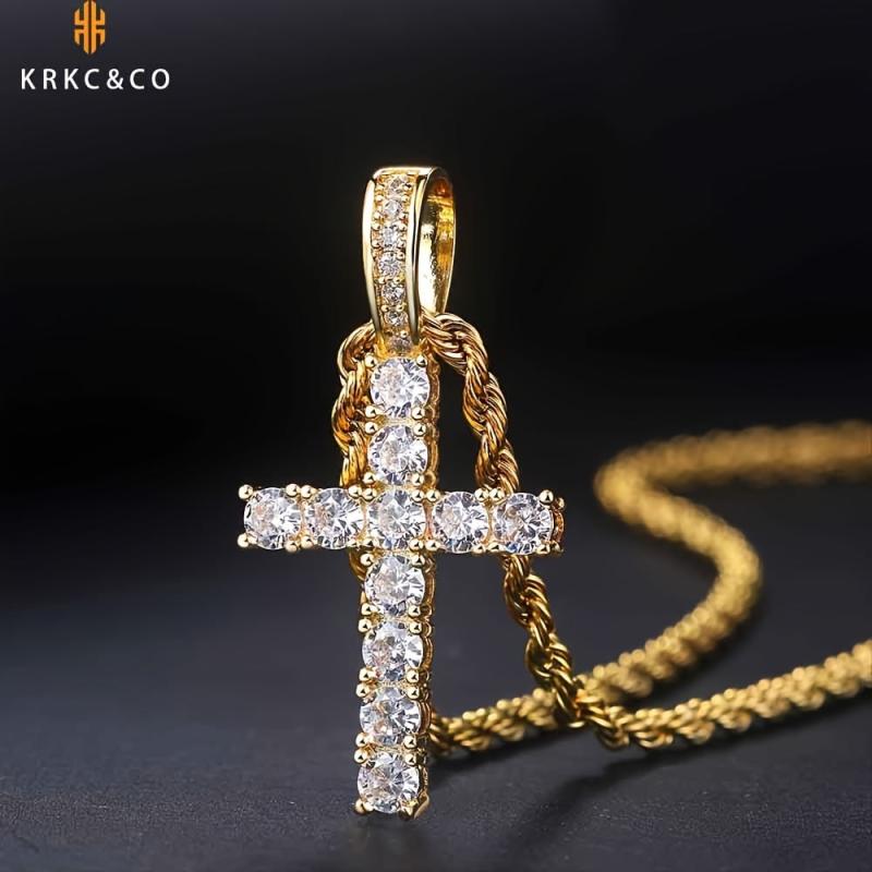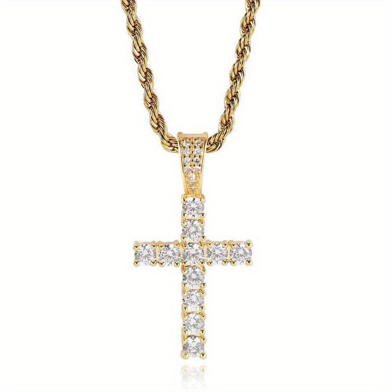 This pendant necklace features a cross design with 4mm zirconia inlays and is plated in 14K golden. It's a stylish accessory suitable for various occasions.