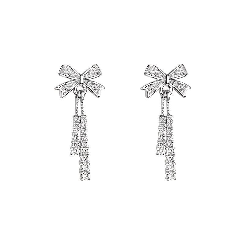 These versatile earrings feature rhinestone-embellished bows, perfect for daily wear. Great as a summer tassel accessory or a gift for couples or BFFs.