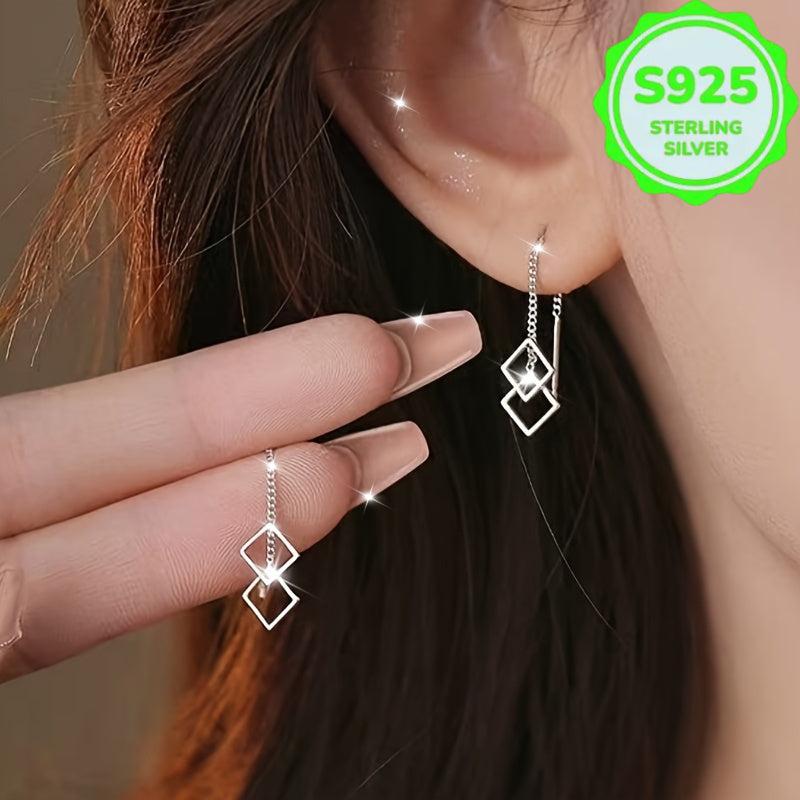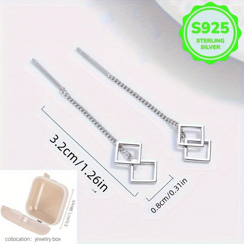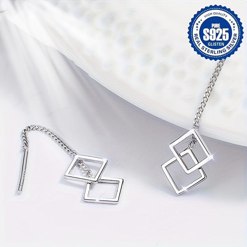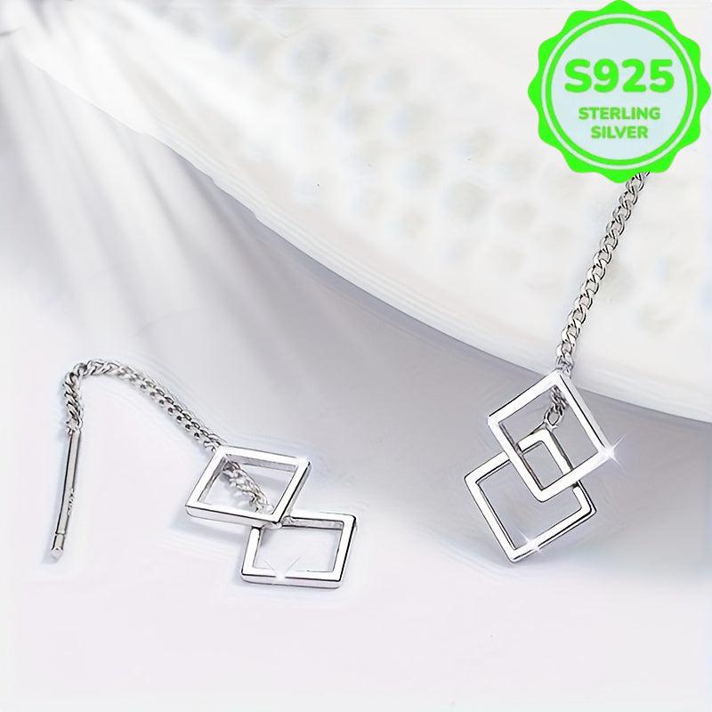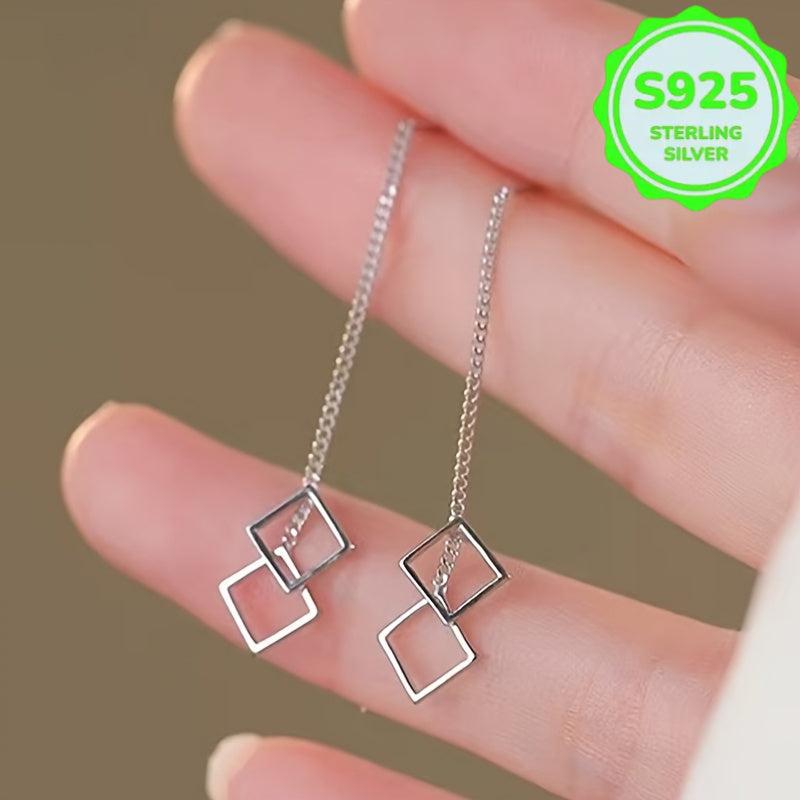 Elegant double square stud earrings made of hypoallergenic S925 sterling silver. Comfortable to wear and add charm to your look. Suitable for women.