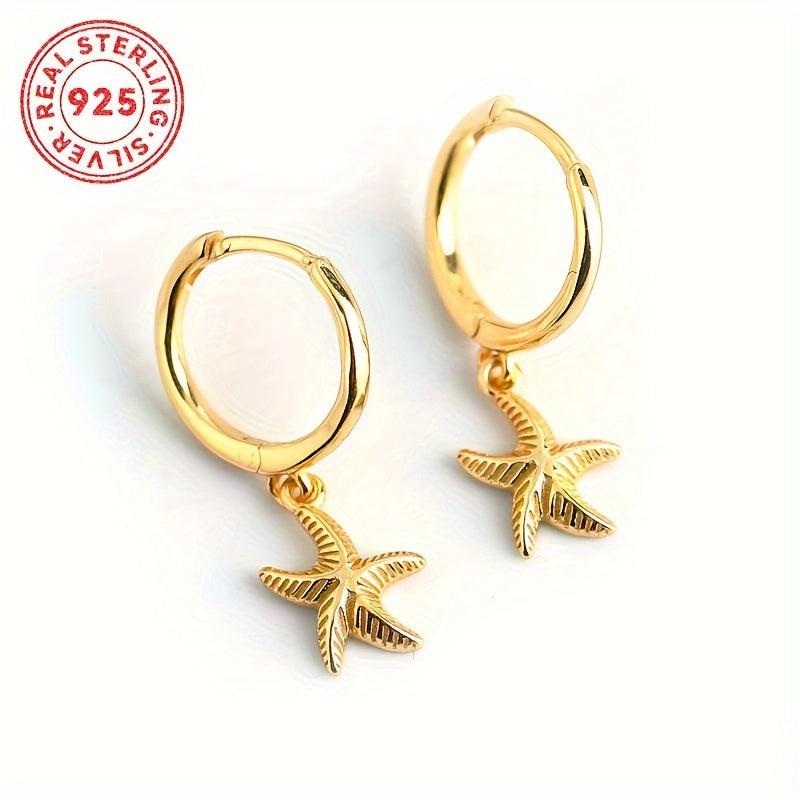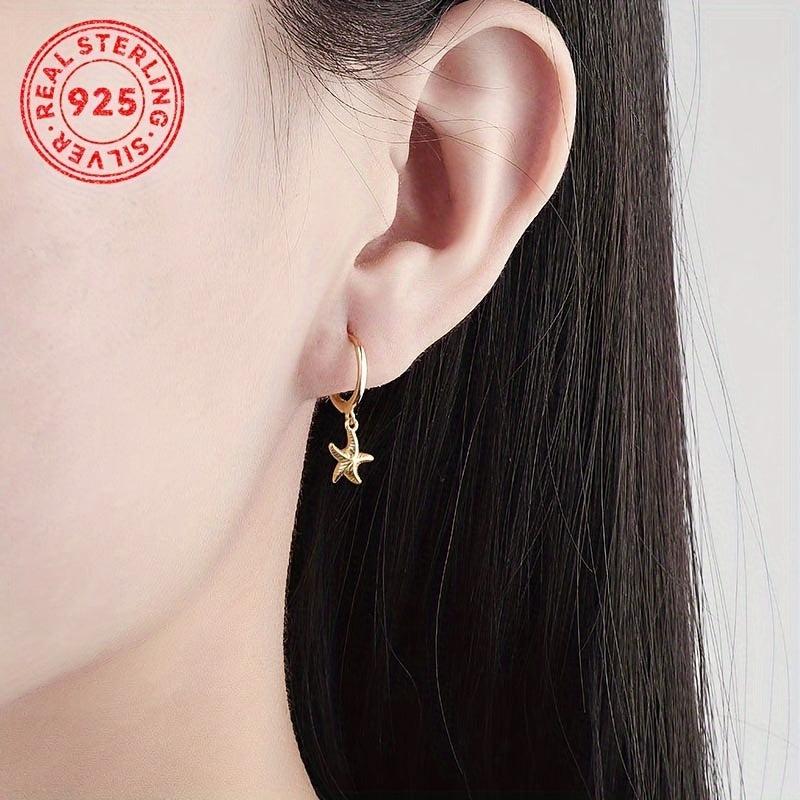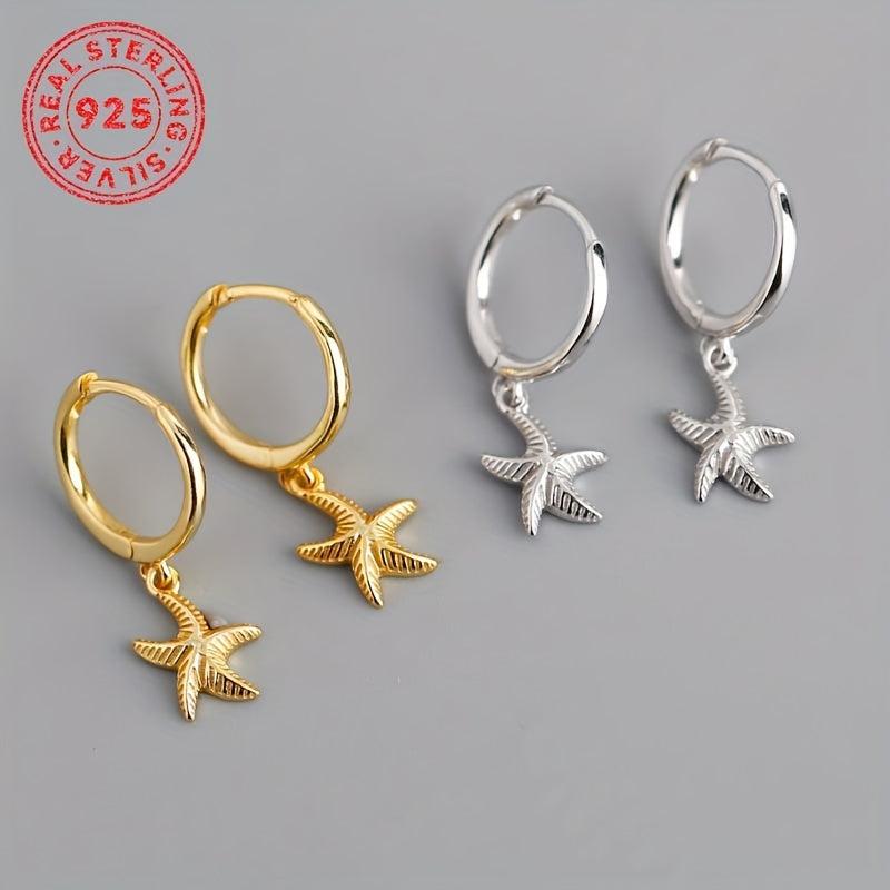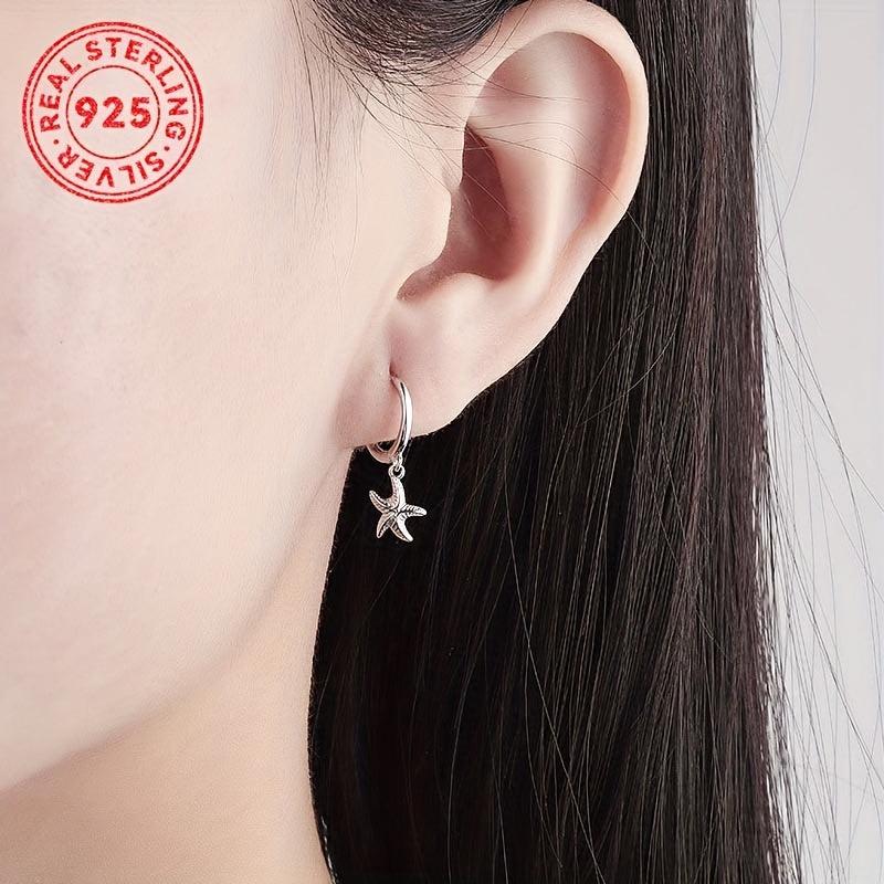 Elegant earrings crafted from 925 silver with island starfish design, perfect for daily wear, vacations, sports, and gifting.