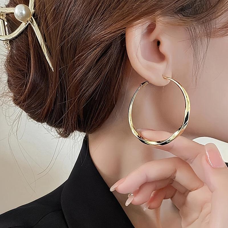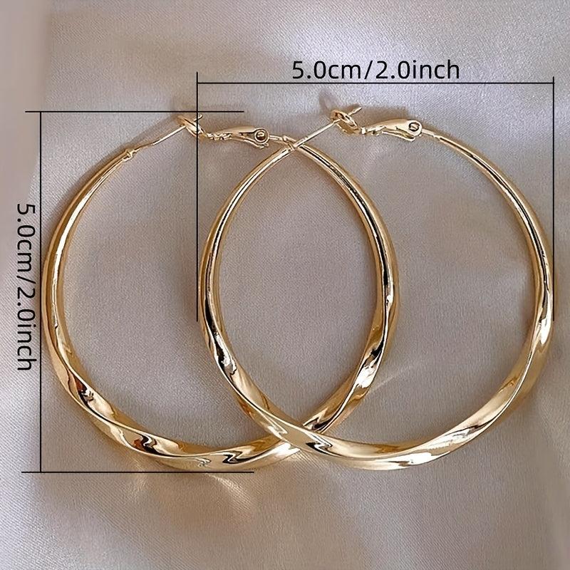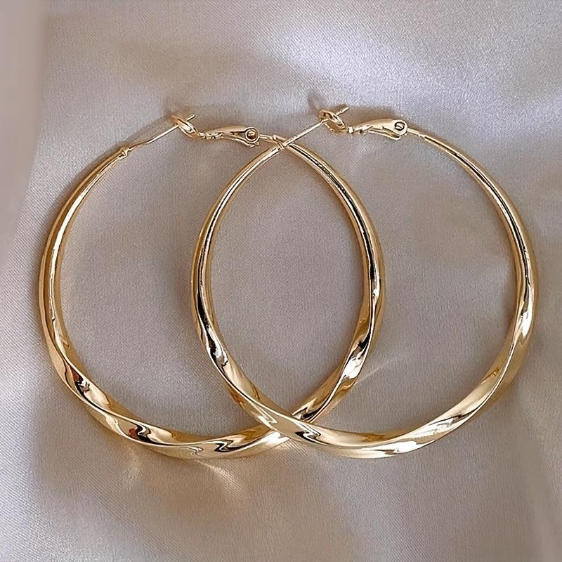 Elegant twisted copper base nickel hoop earrings with gold plating. Perfect for women who love stylish accessories.