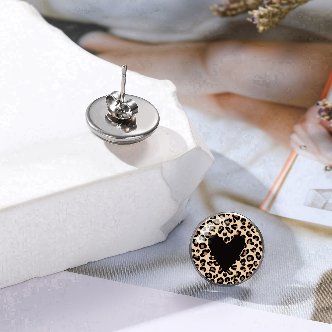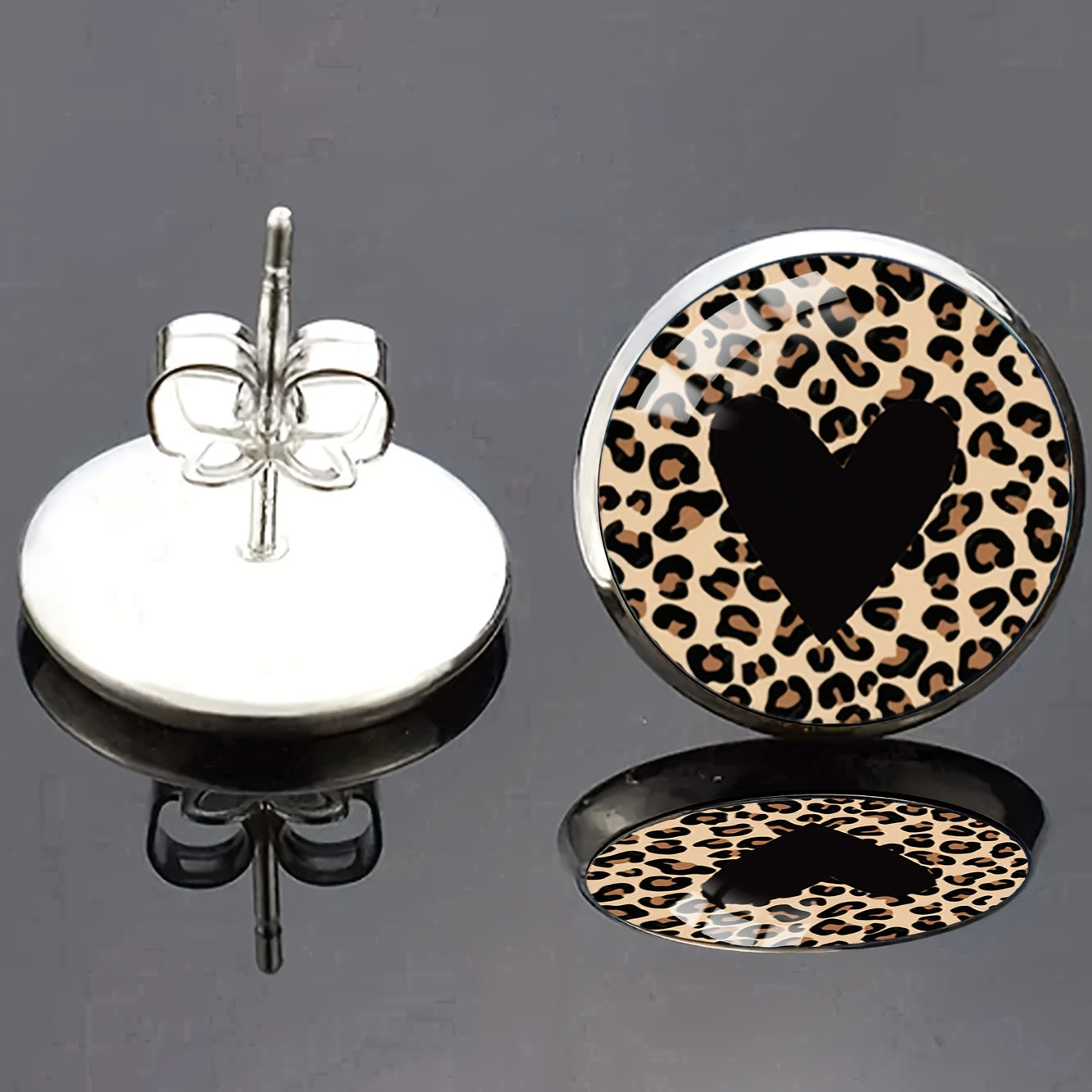 Add a touch of wild charm with these leopard print love stud earrings. Ideal fashion accessory for both women and men.