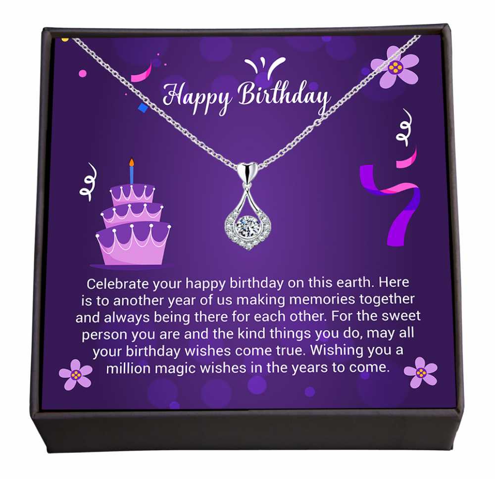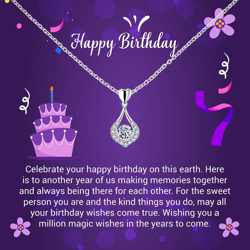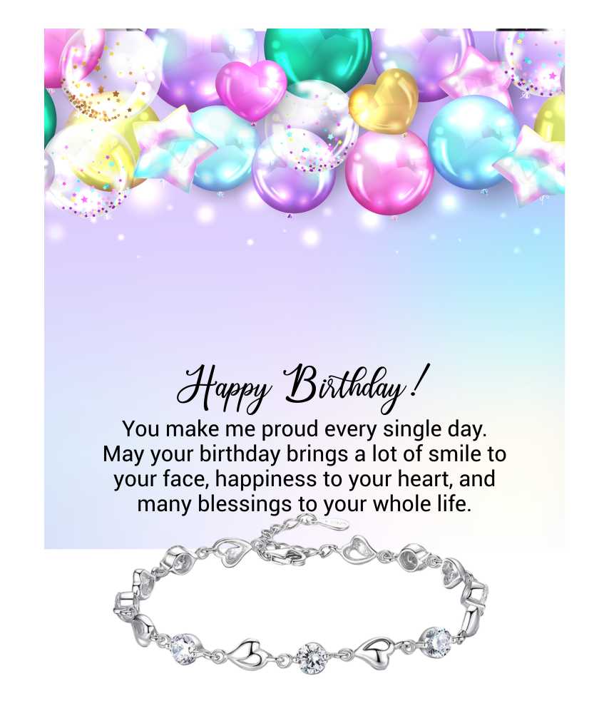 En ce jour spécial, nous célébrons l'âme la plus douce et la plus gentille qui apporte tant de joie à tous ceux qui nous entourent. Alors que vous entamez une nouvelle année magnifique, que votre cœur soit rempli d'amour, de rires et d'aventures sans fin. Pour marquer cet événement magique, voici un petit cadeau à chérir : un magnifique bijou, confectionné avec amour et soin, rien que pour vous. Qu'il vous rappelle à quel point vous êtes unique et la lumière que vous apportez dans nos vies.