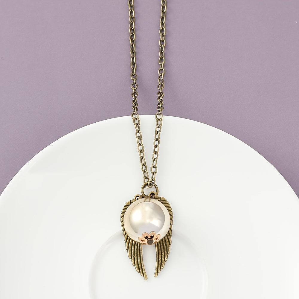 Add a touch of vintage charm with this stylish pendant necklace featuring faux pearl and wing design. Perfect accessory for men.