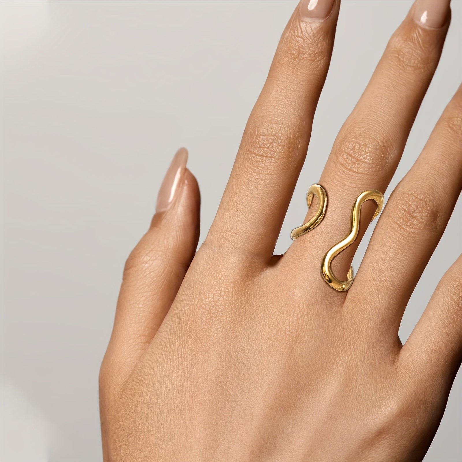 This modern and artistic open ring is made of durable 304 stainless steel with a polished finish. It is versatile and can be worn casually or formally every day.