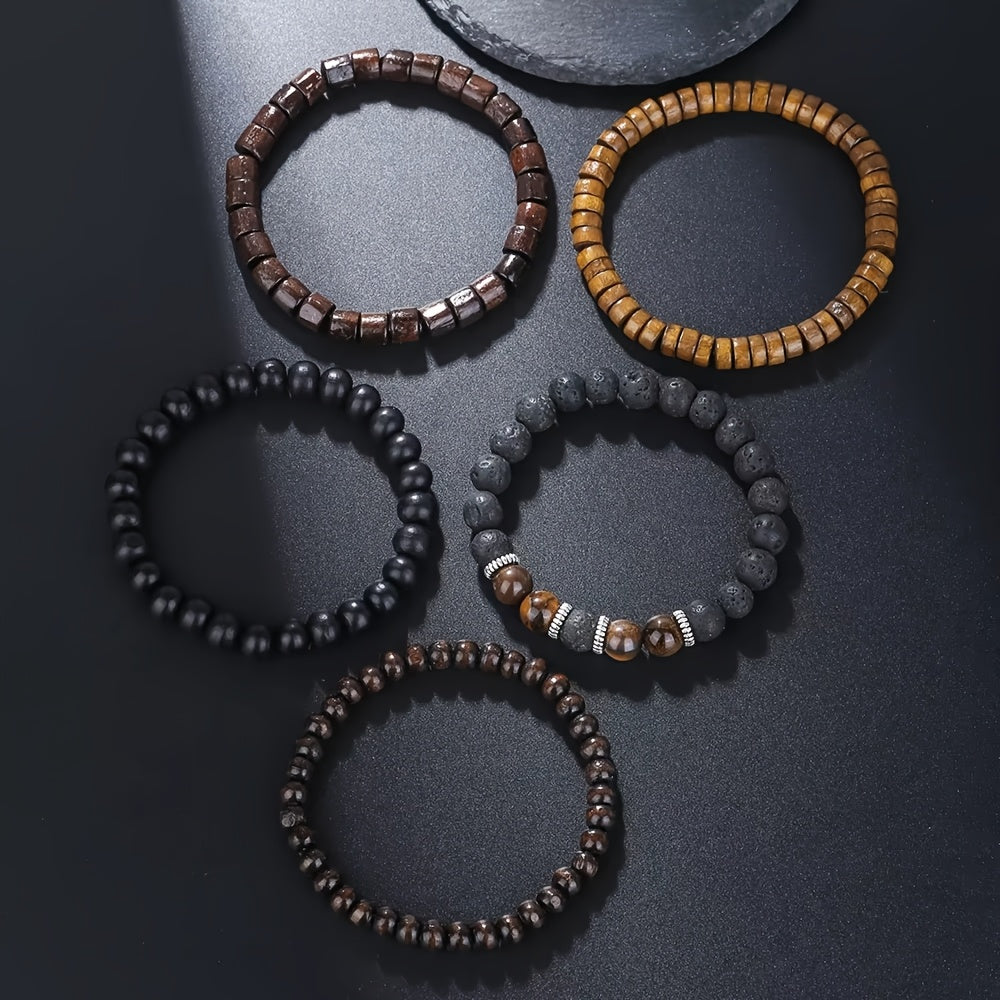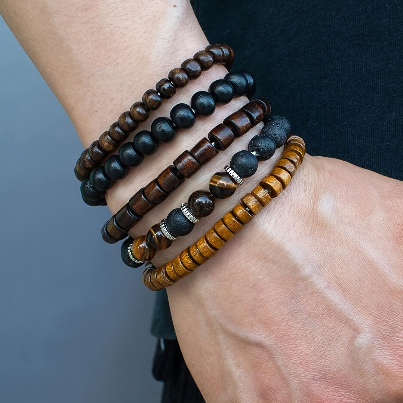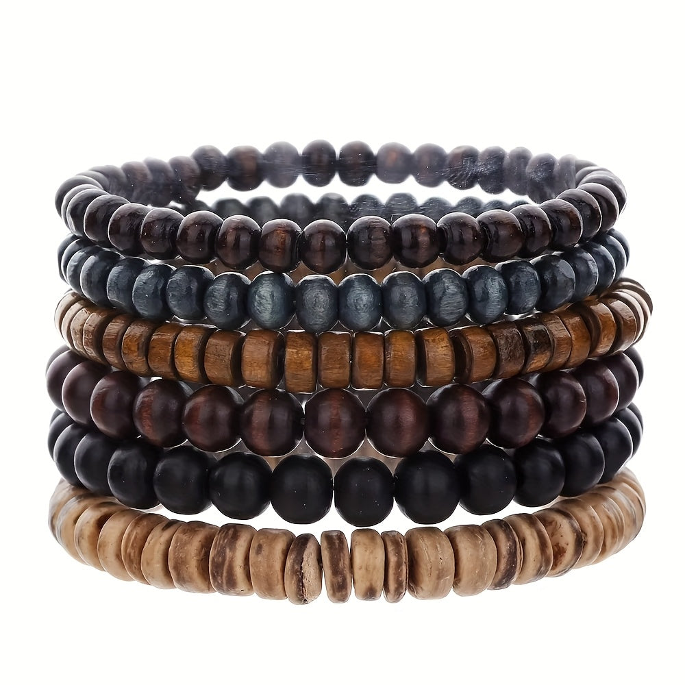 Men's Beaded Coconut Bracelet Set for Daily Wear Gift for Men