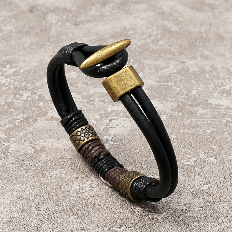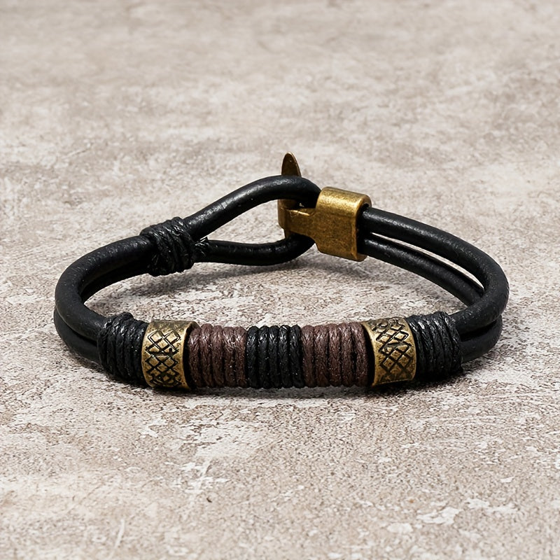 Embrace a retro punk style with this cowhide bracelet that exudes a bold and edgy look. The braided design adds a touch of uniqueness to your accessory collection.