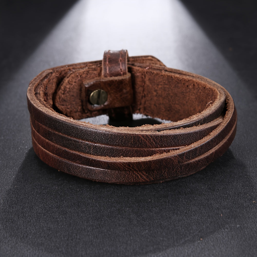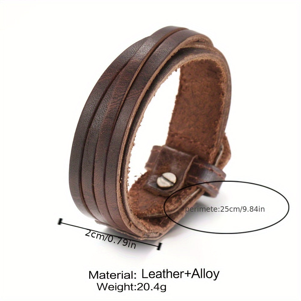 Men's Casual Leather Bracelet Adjustable Layer Leather Daily Wear Accessory