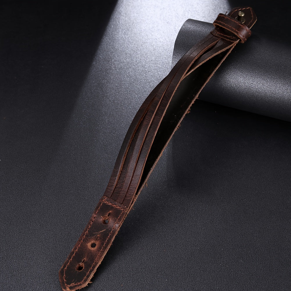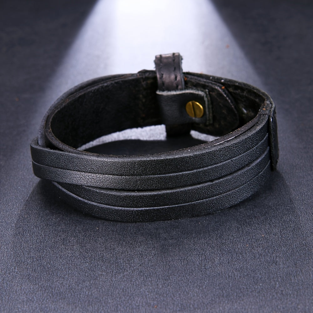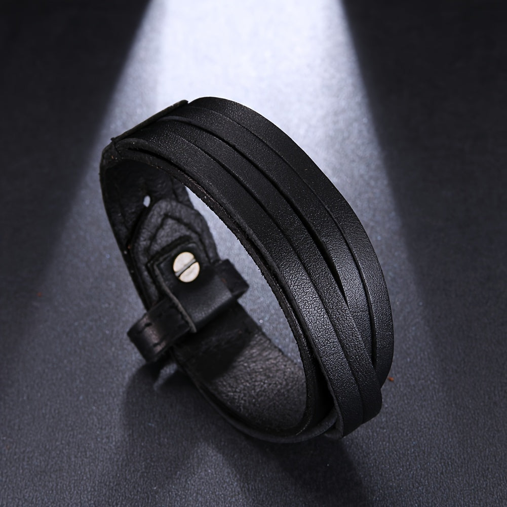 This men's casual leather bracelet is a minimalist style accessory that is both durable and versatile for daily wear. It features adjustable layers for a comfortable fit.