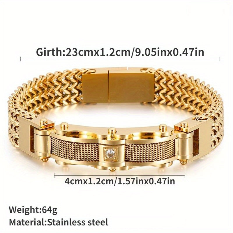 Elegant men's chain bracelet with inlaid rhinestones and magnetic closure. The perfect accessory for adding a touch of style to any outfit.