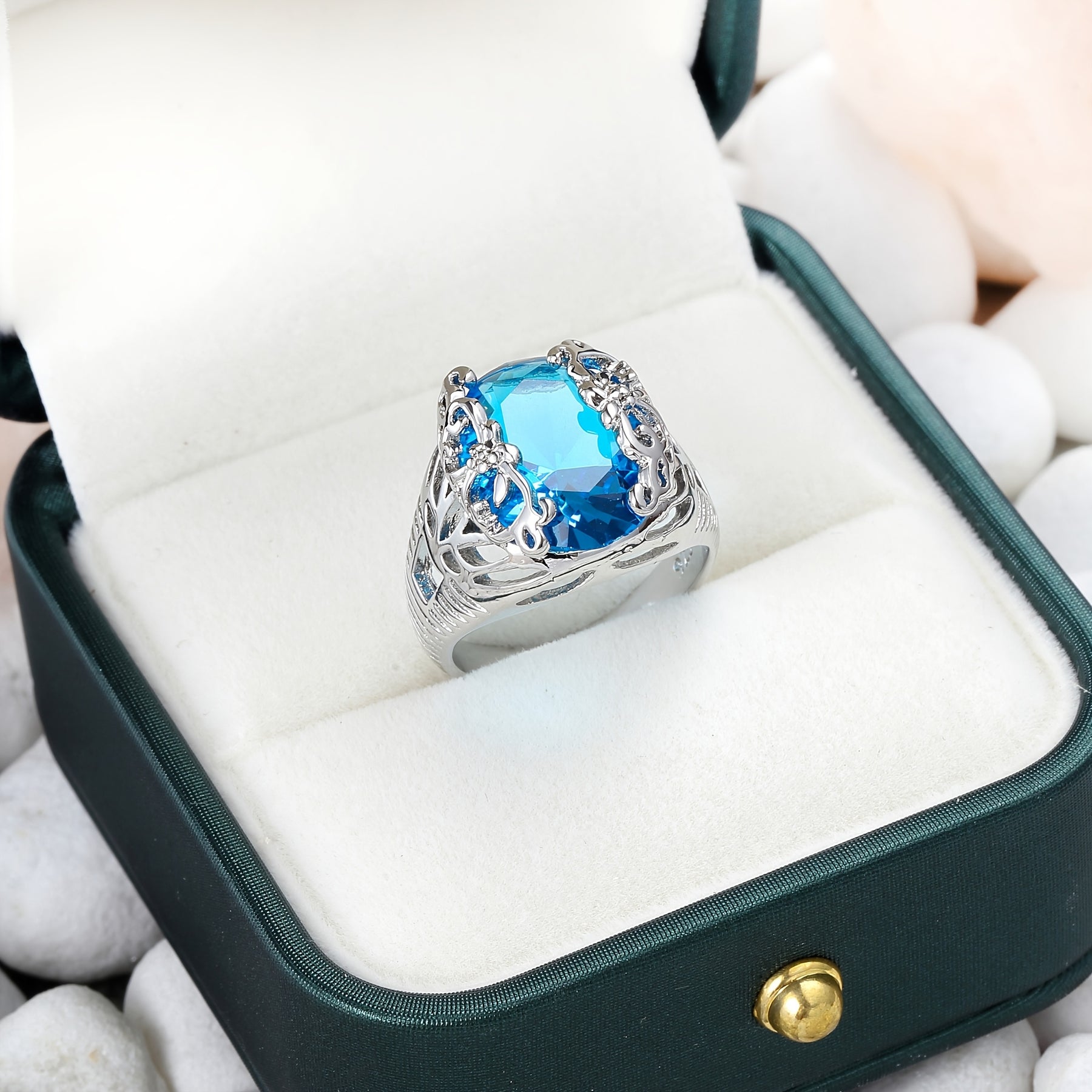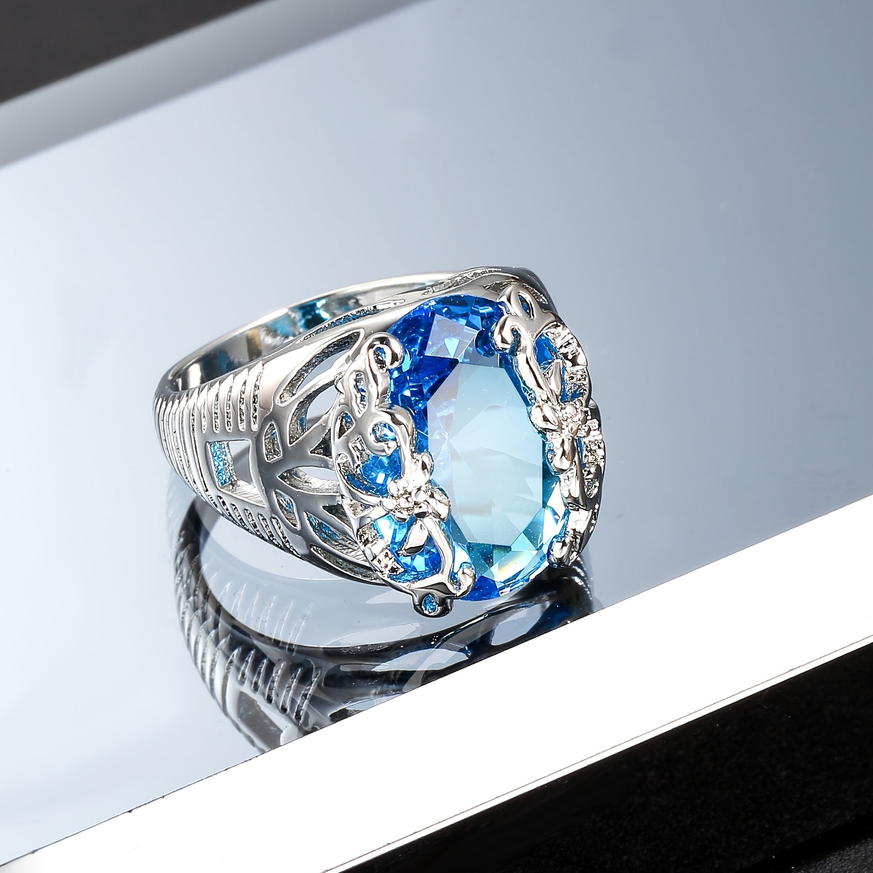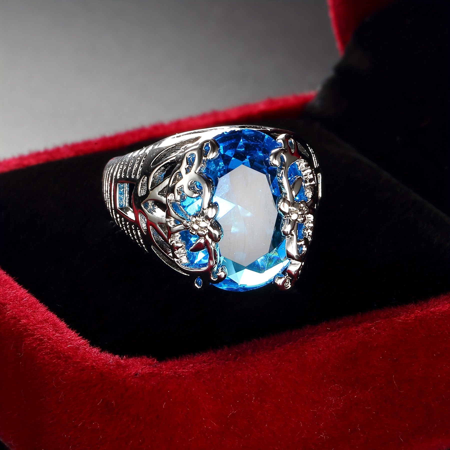 This exquisite ring features intricate leaf design and shimmering cubic zirconia. It makes a perfect gift for him on Valentine's Day, wedding or engagement.