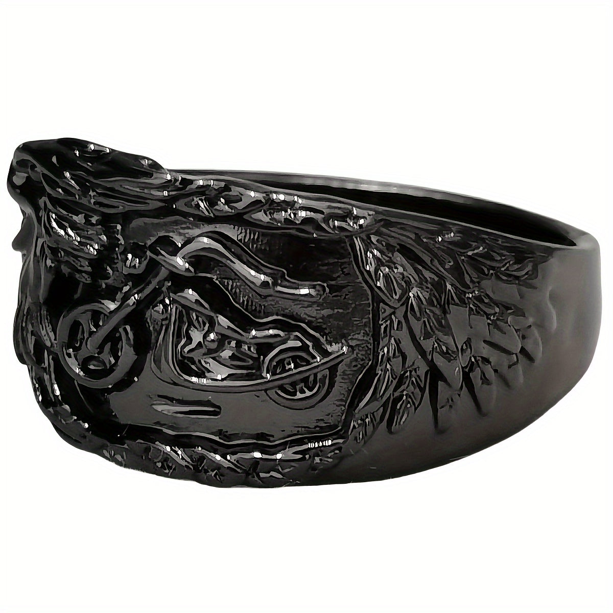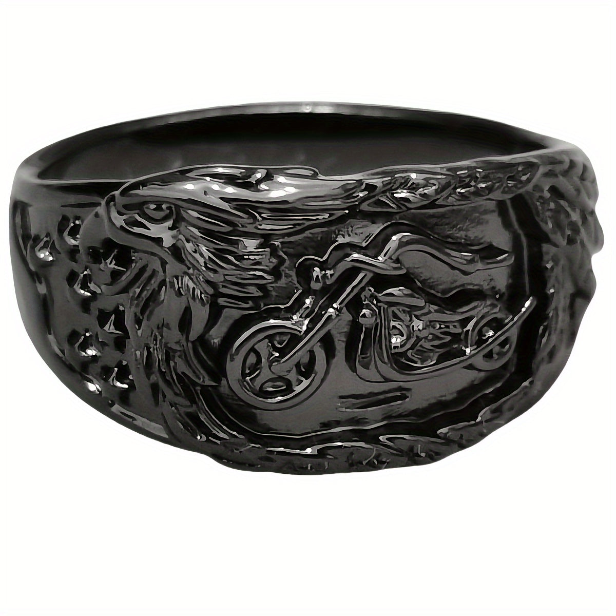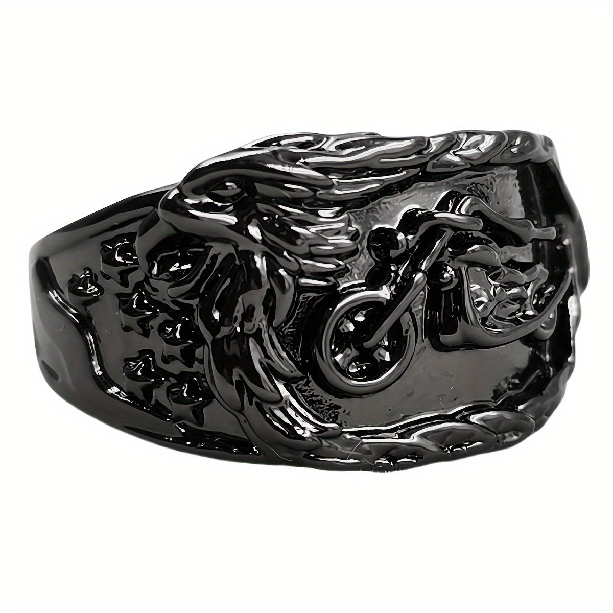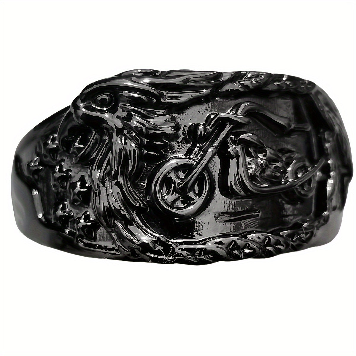 This stylish ring features an eagle beak engraving, perfect for adding a punk-inspired touch to your look. It is a fashionable accessory that draws inspiration from motorcycle culture.