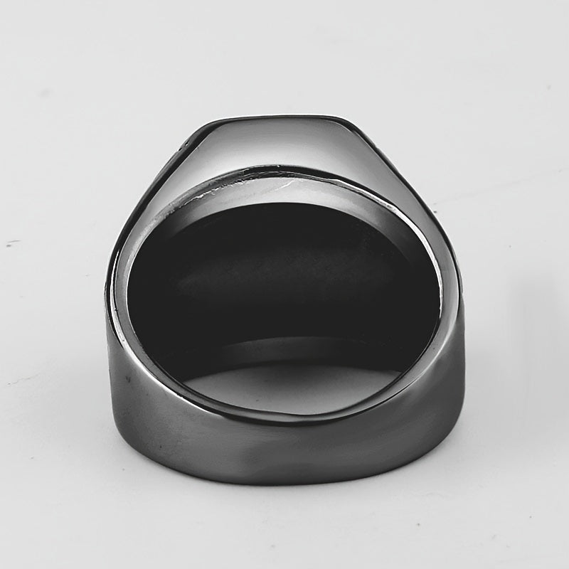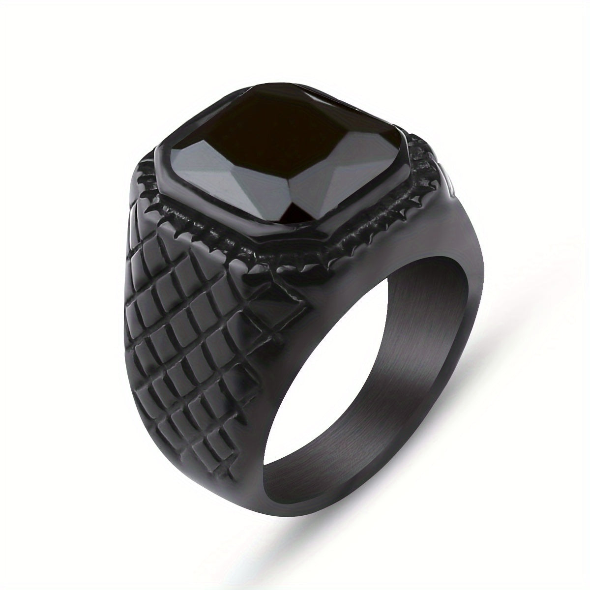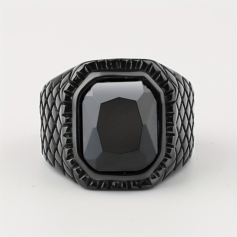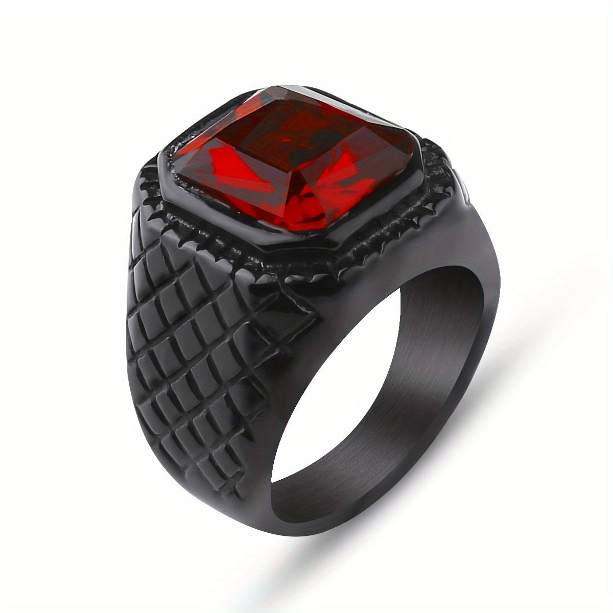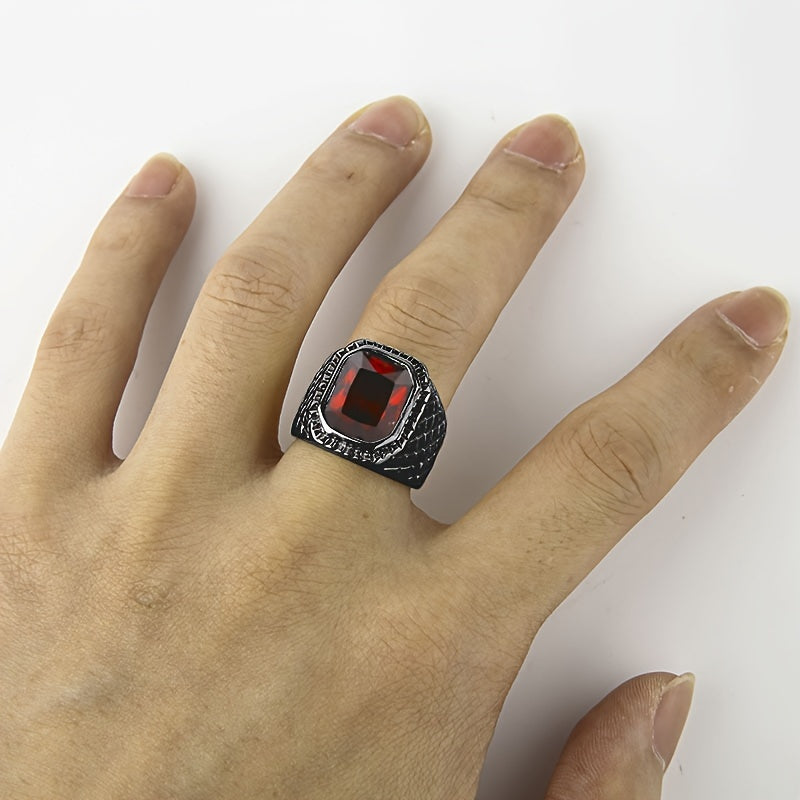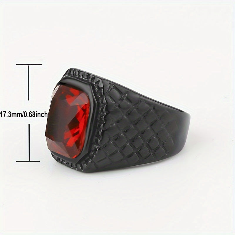 Vintage red artificial crystal ring with octagonal bezel setting, durable uncoated metal band for casual wear. Made from 316L stainless steel.