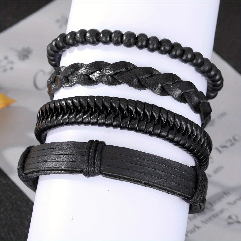 Men's Retro Braided Leather Bracelet Punk Woven Hand Accessory