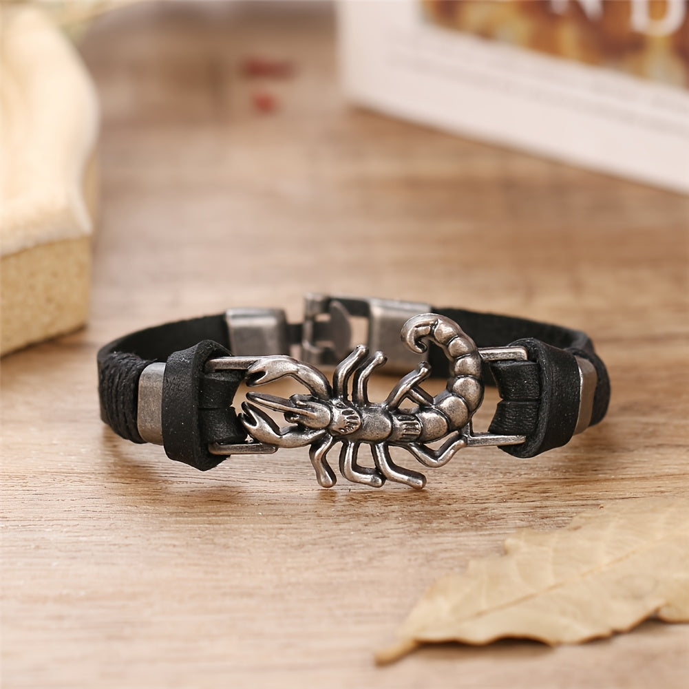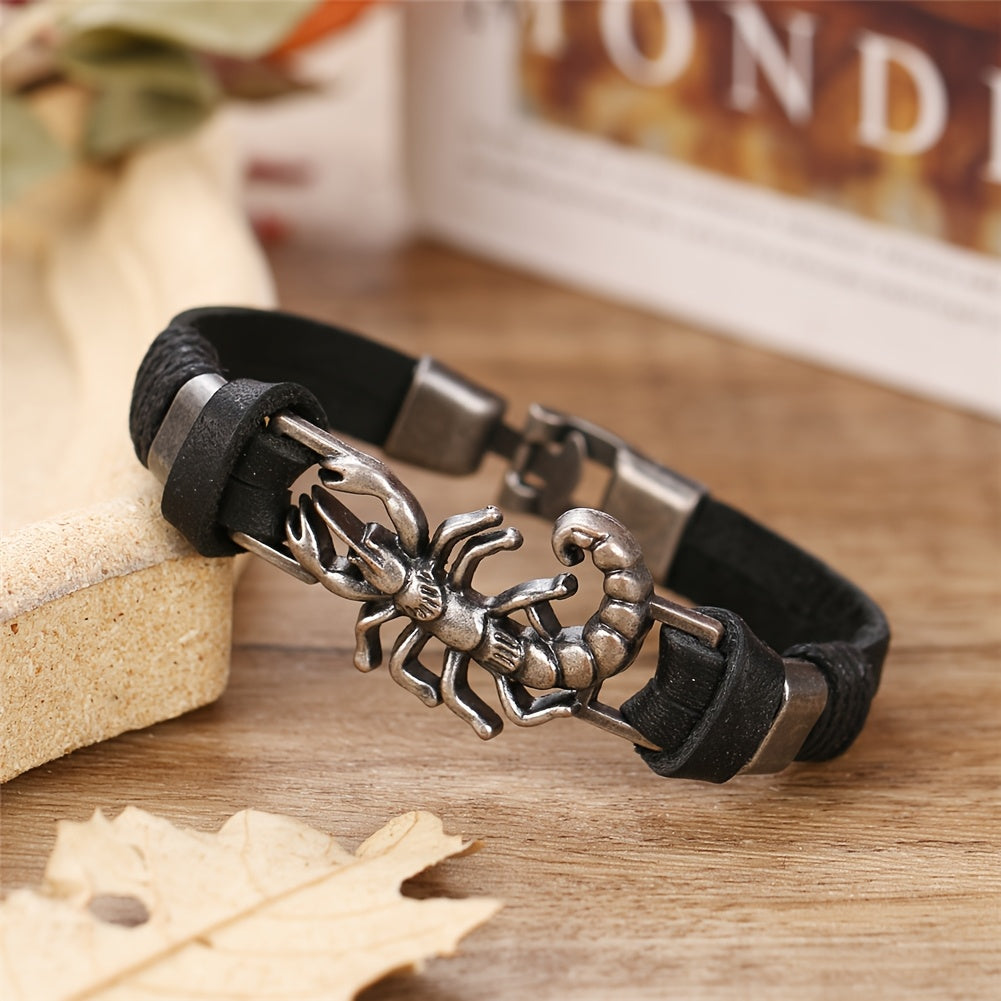 Men's Scorpion Leather Bracelet for Casual Wear