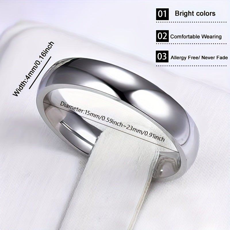 This high-quality stainless steel ring features a polished design, perfect for engagements, weddings, or as a gift for couples. The 4mm width offers a comfortable fit.