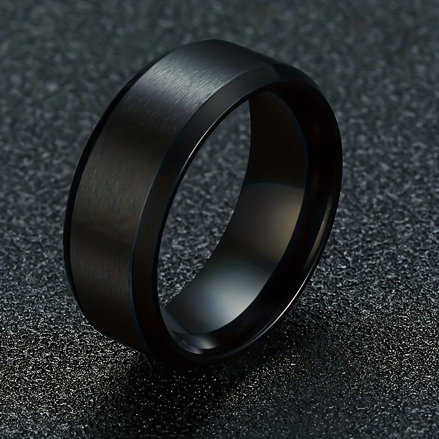 This stylish men's ring features bevel edges and a wide 8mm band, perfect for parties or special occasions. Made of high-quality stainless steel with a durable plated finish.