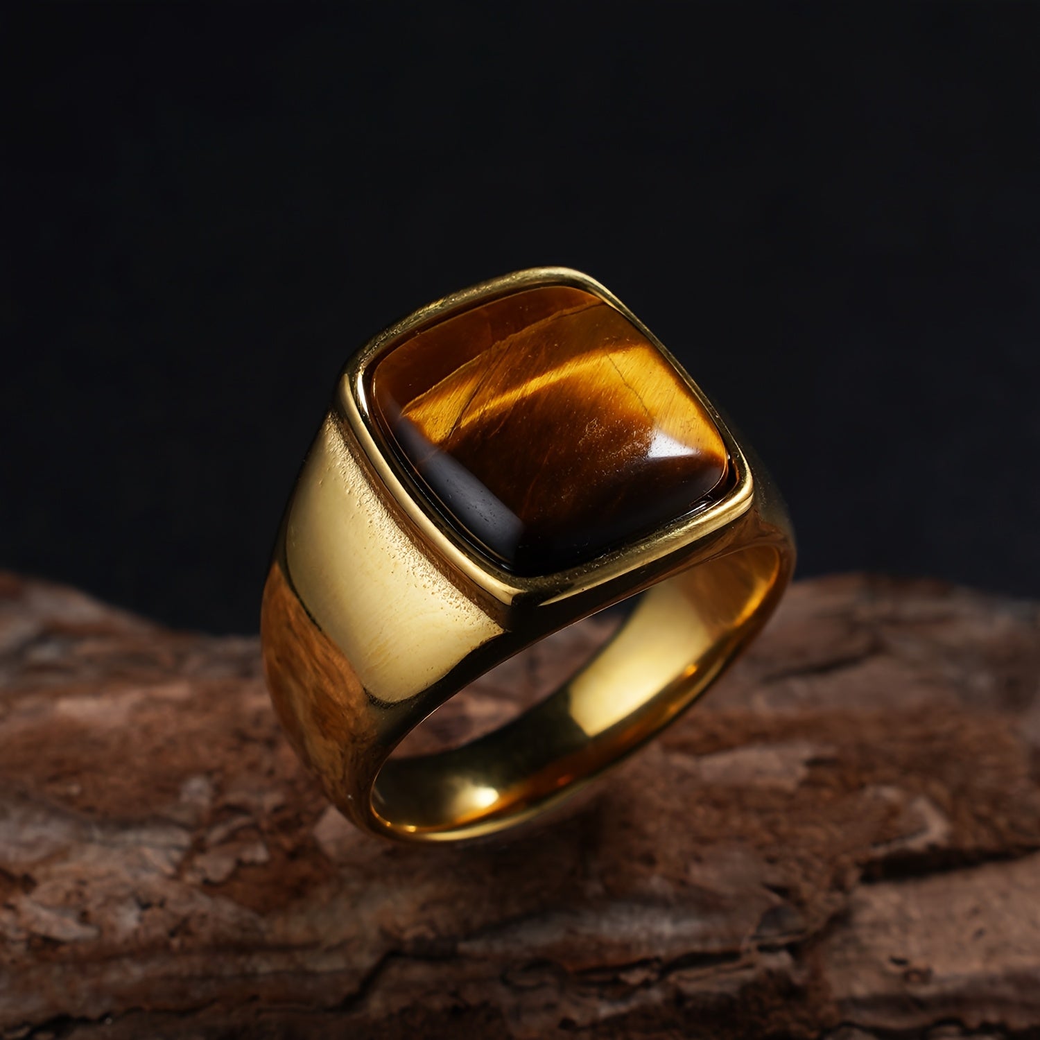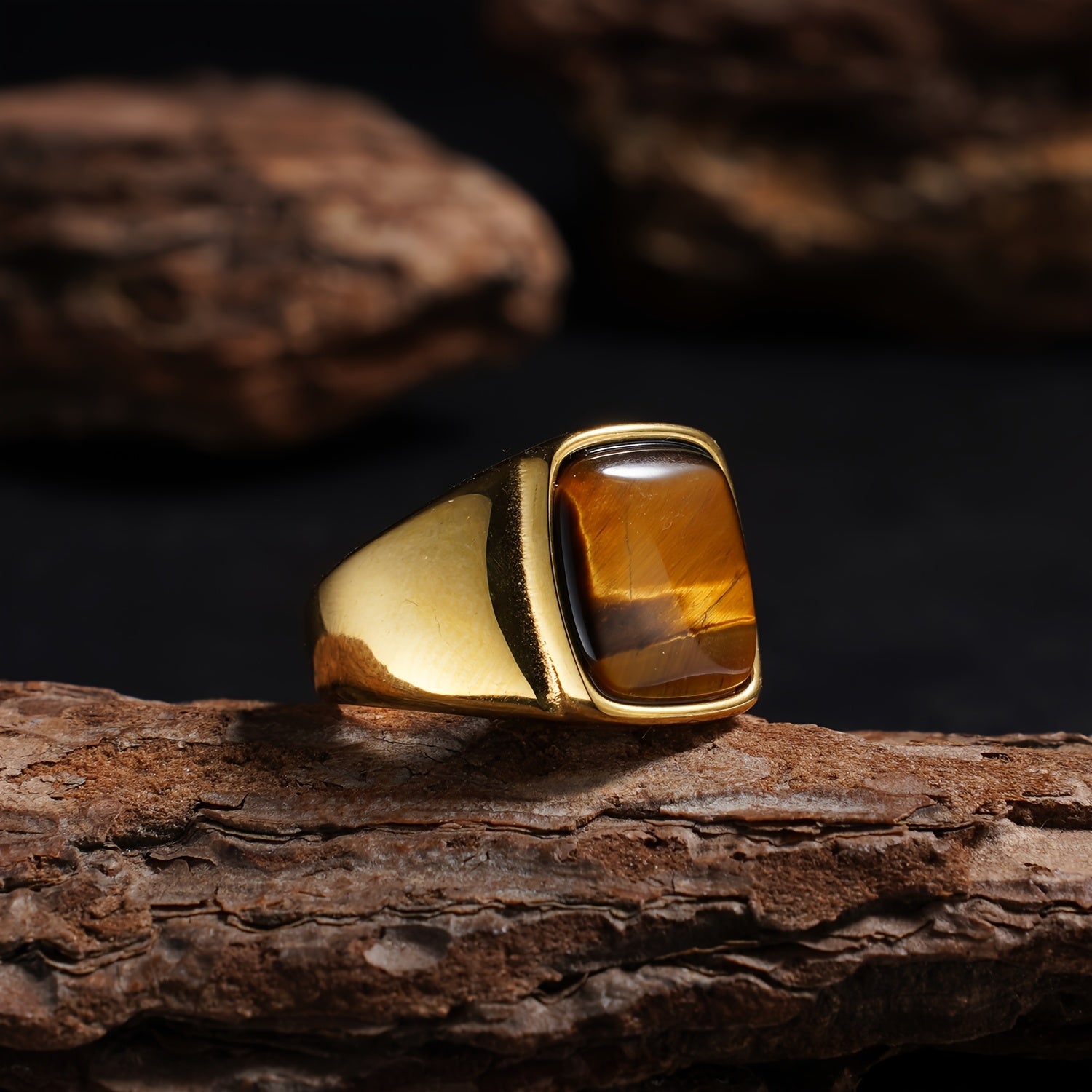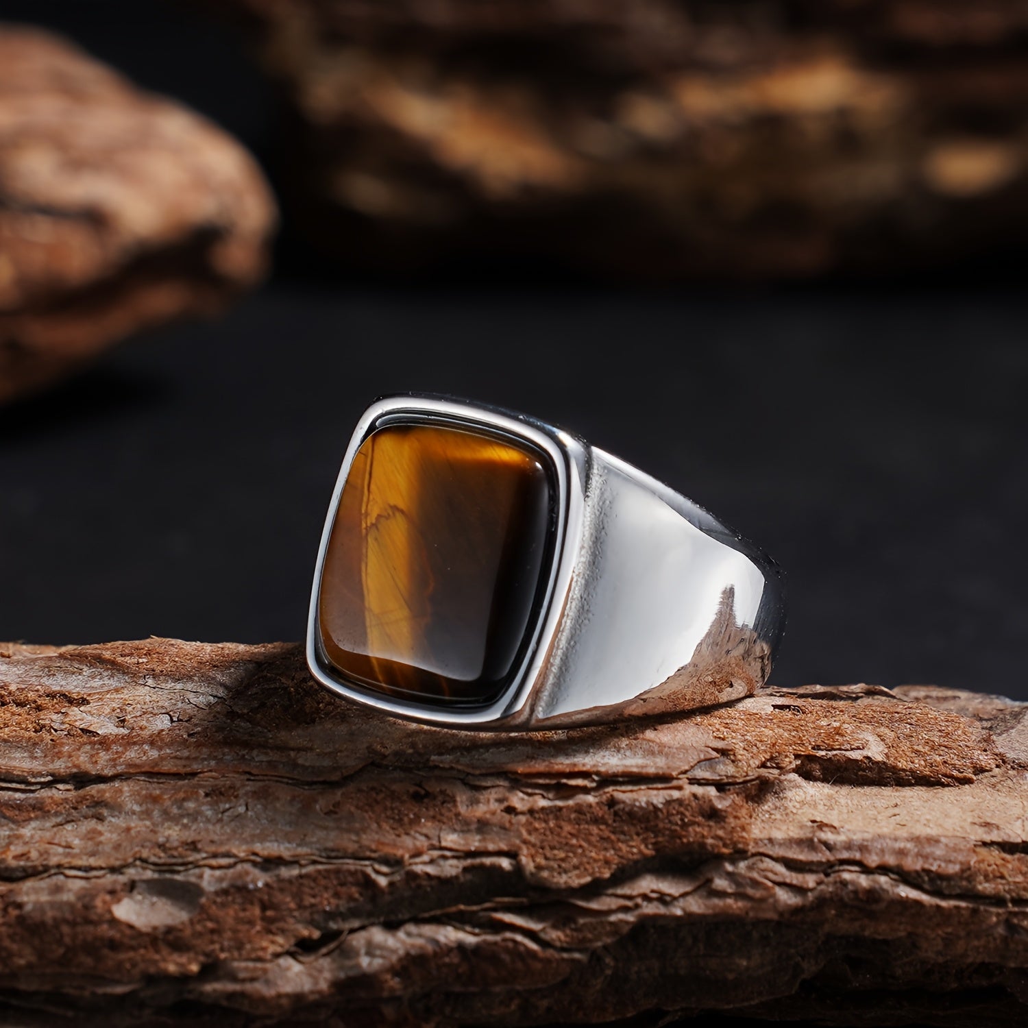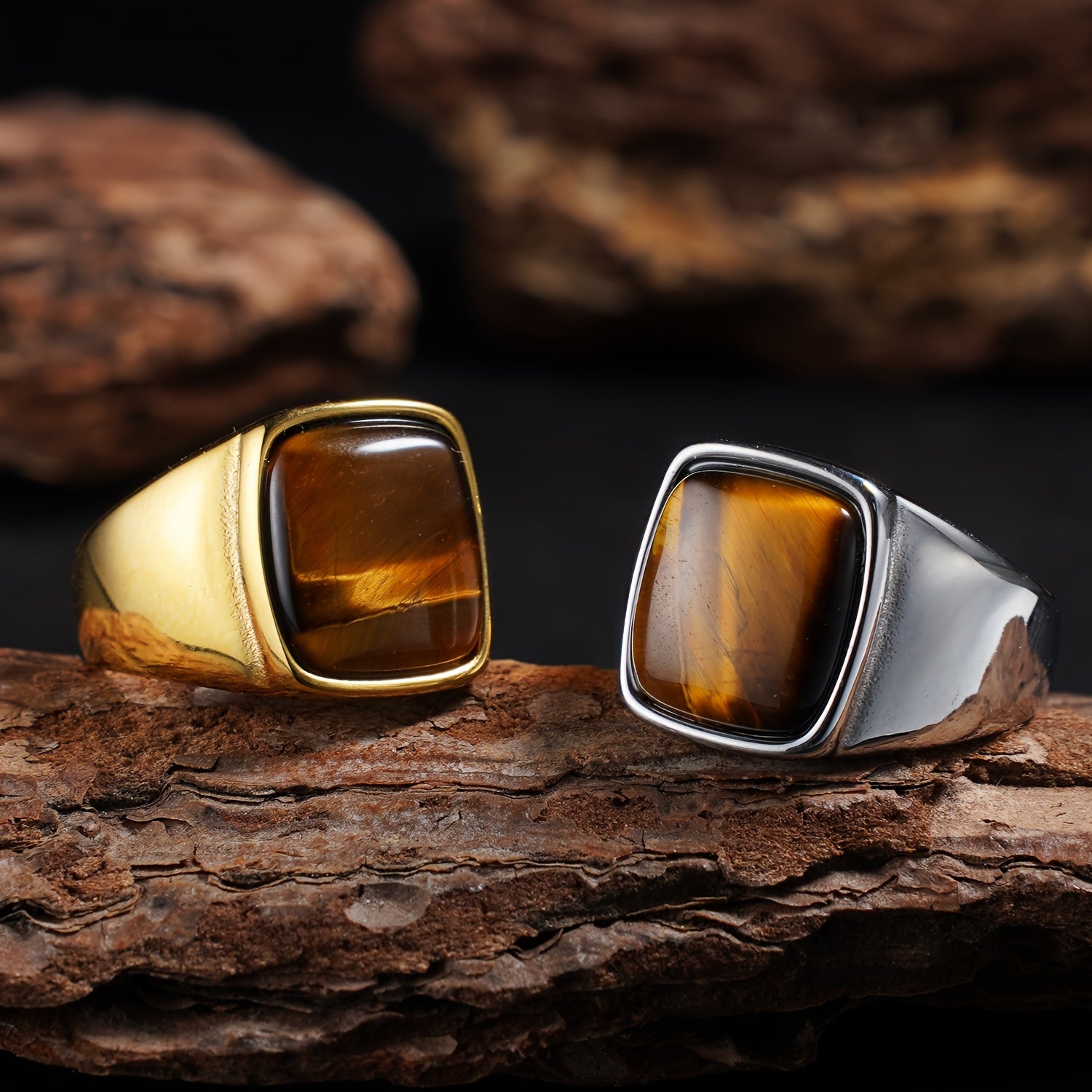 This vintage-styled ring is made of 316L stainless steel with a natural Tiger's Eye stone. It features intricate detailing and is durable, making it a perfect unisex jewelry gift for him on anniversaries, birthdays, or any special occasion.