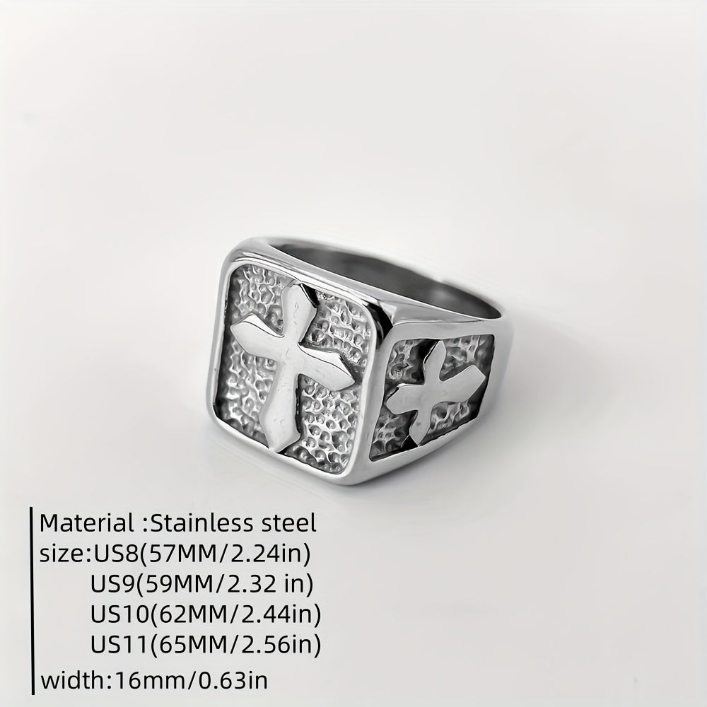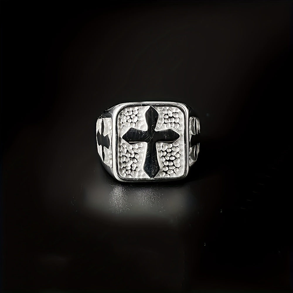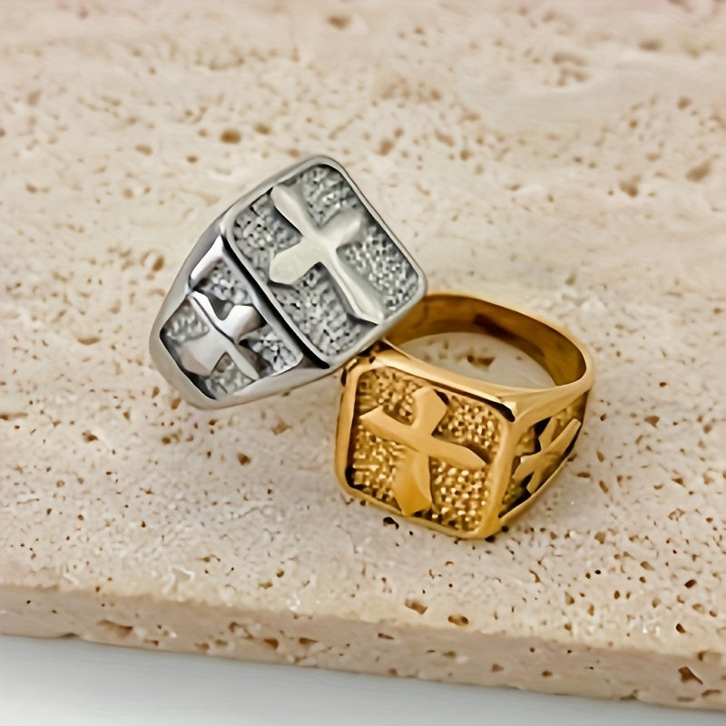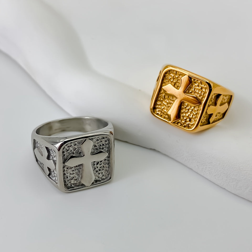 This minimalist square cross ring is perfect for men who appreciate a simple yet stylish statement piece. Made of high-quality stainless steel with a gold-plated finish, it exudes a sophisticated charm. The adjustable band ensures a comfortable fit for any finger size.