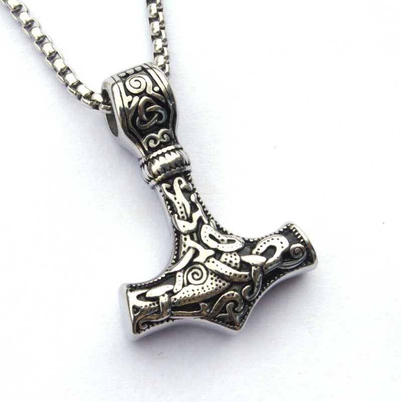 Collier avec pendentif marteau de Thor en acier inoxydable pour homme avec chaîne