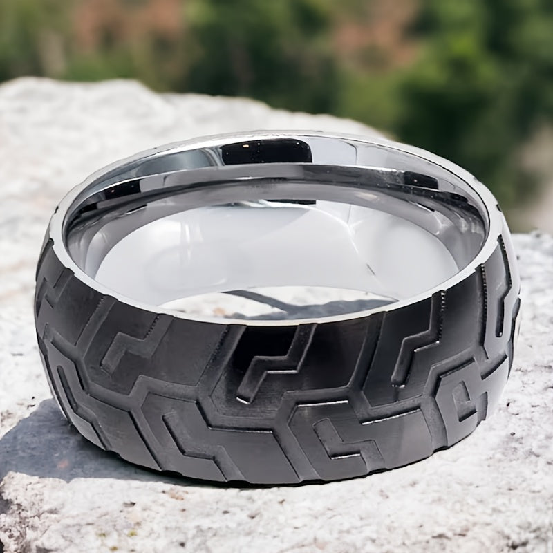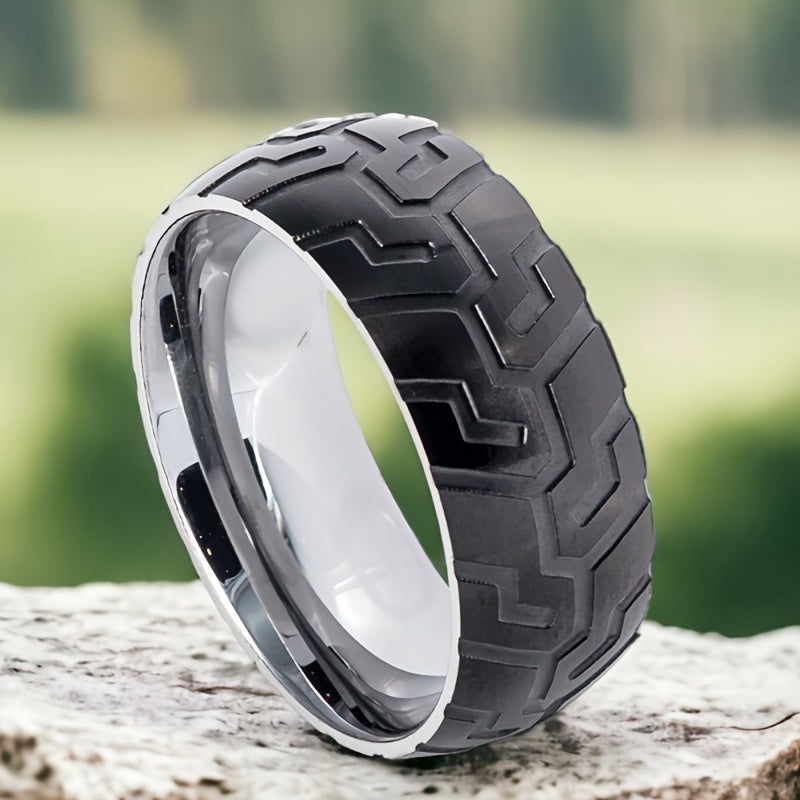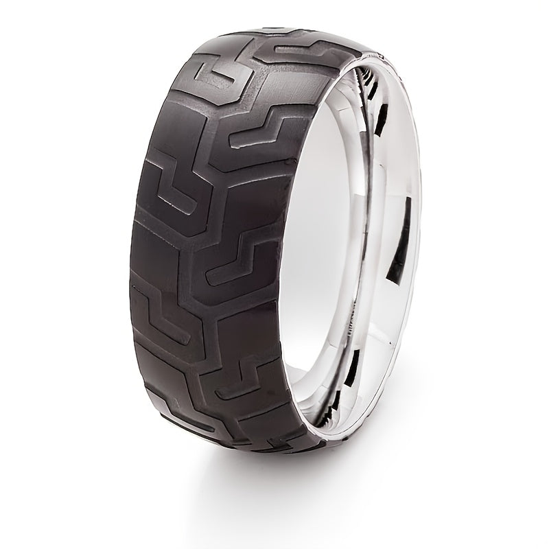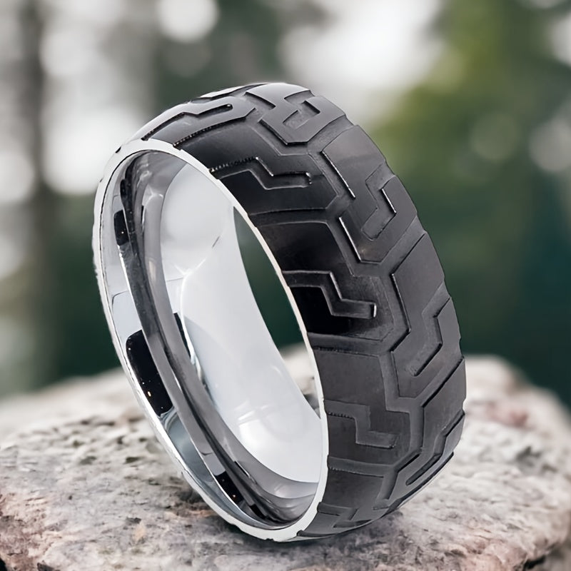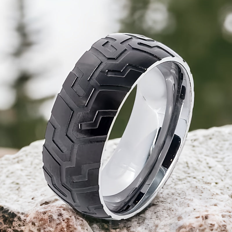 This stylish and durable ring is perfect for all-season wear. Made from 316L stainless steel with a sequin mosaic design, it features a single tire tread ring. Ideal for weddings or everyday wear.