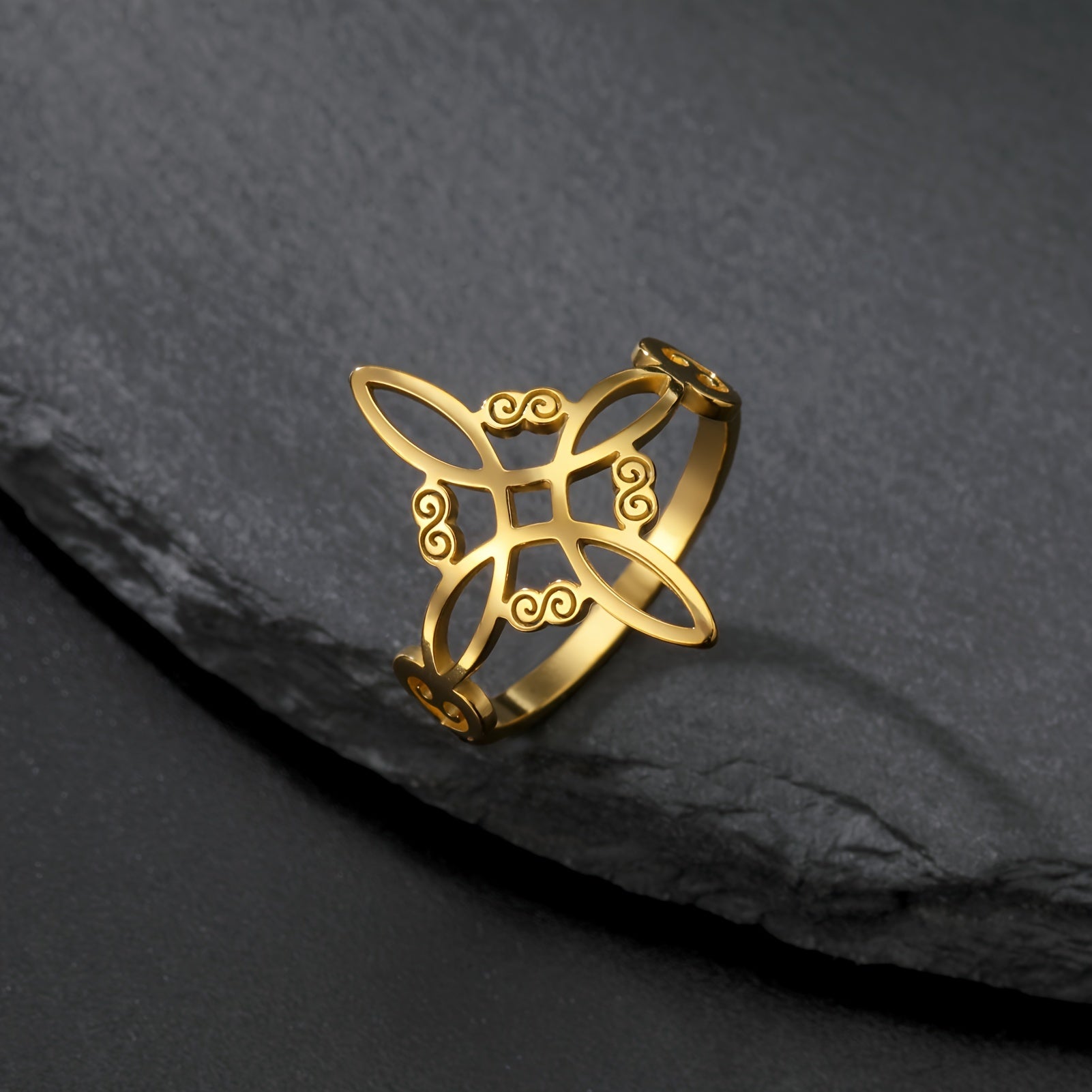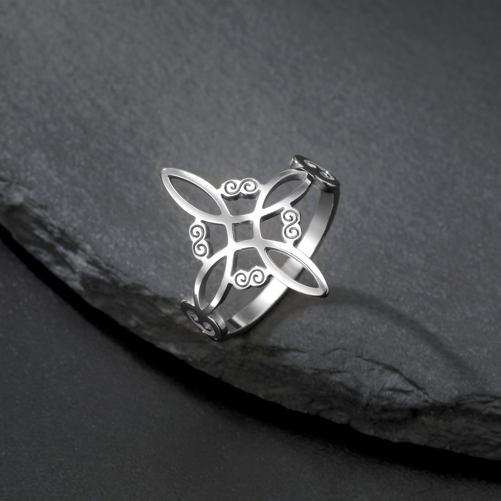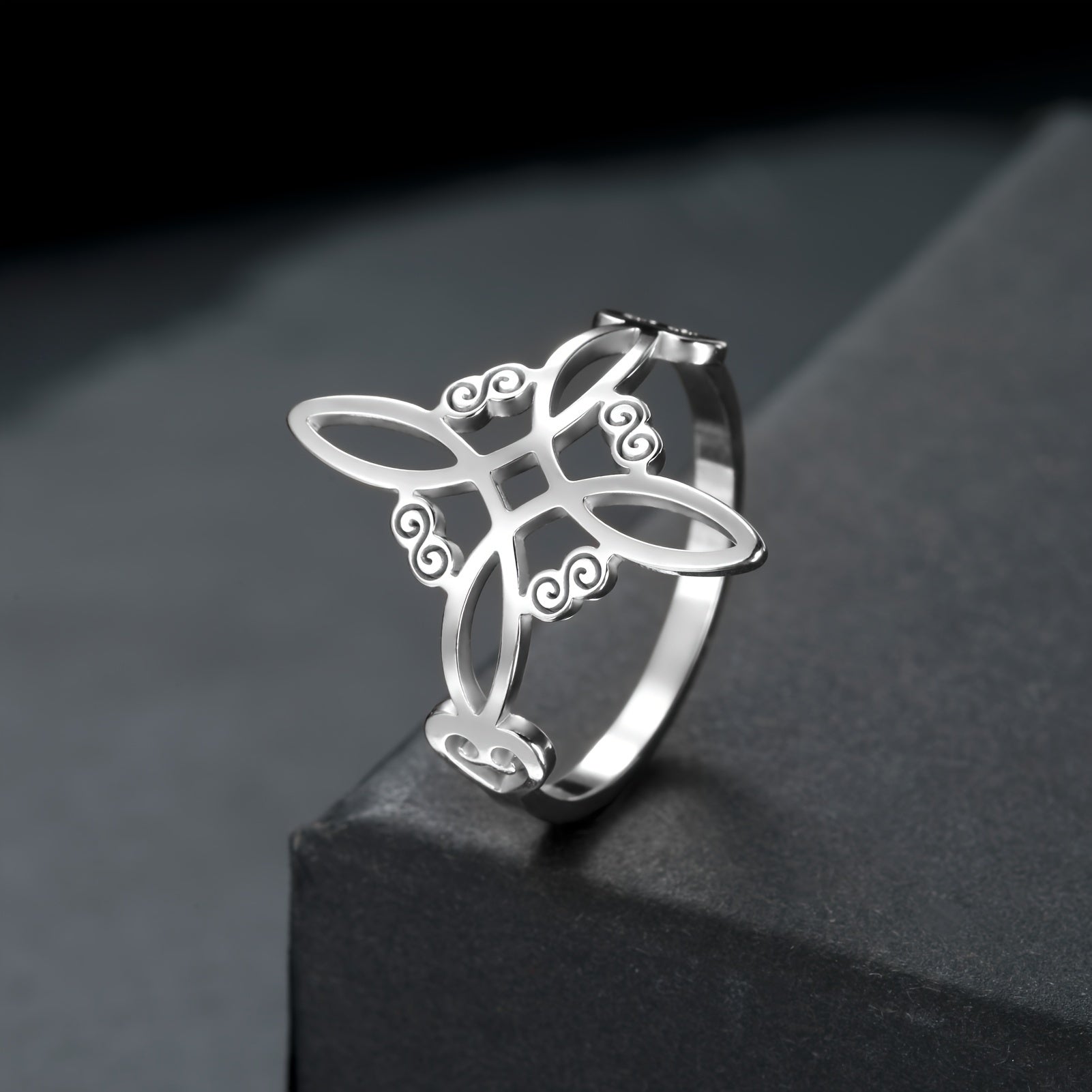 This stainless steel ring is a perfect wedding anniversary gift for couples. It features a witch knot design suitable for both men and women.