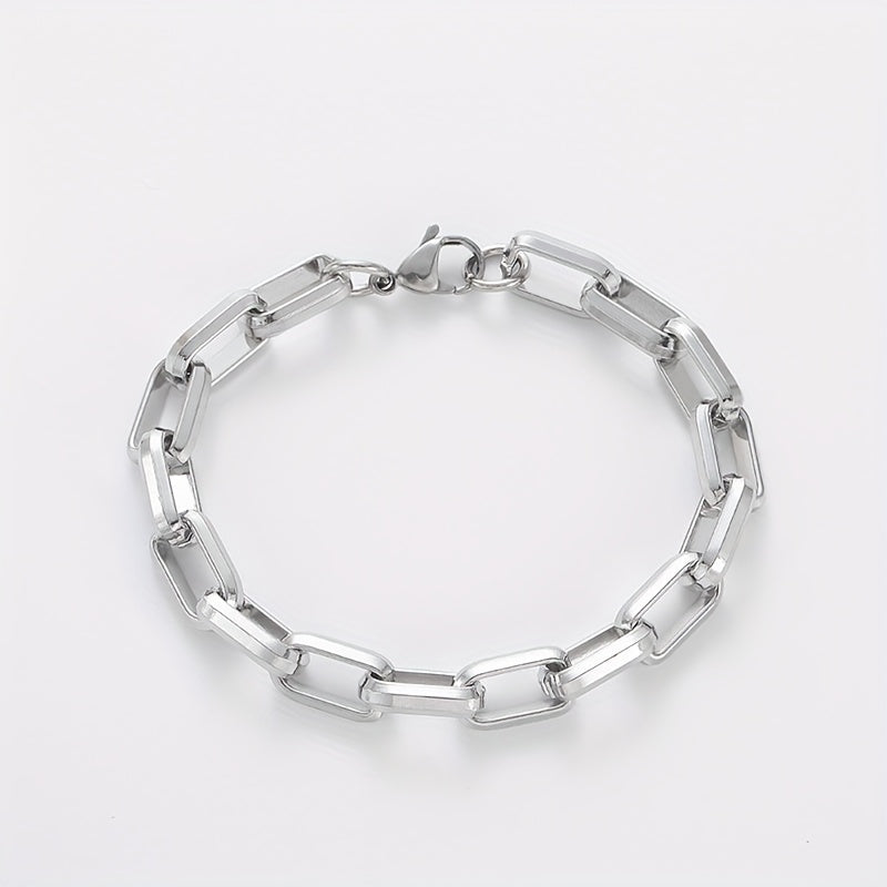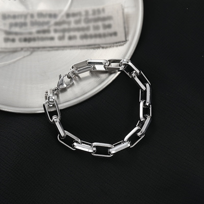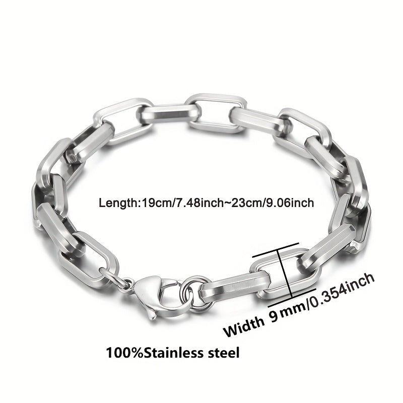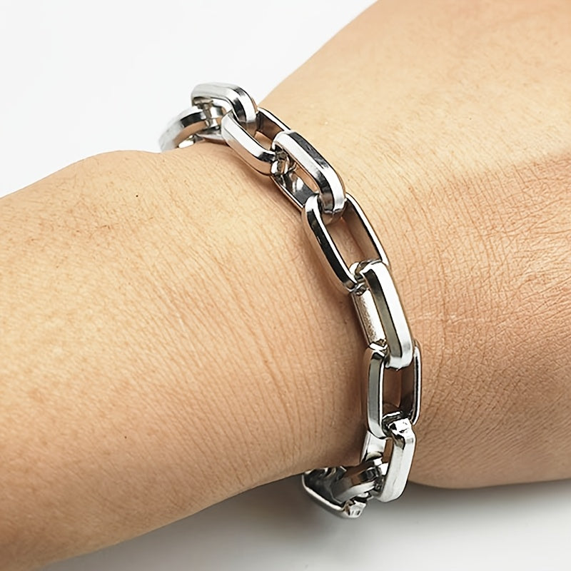 This stainless steel bracelet features a punk hip hop style with rectangular interlocking chain links. Ideal for parties and daily wear. The perfect Christmas gift for him.
