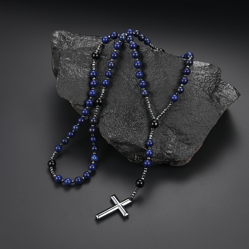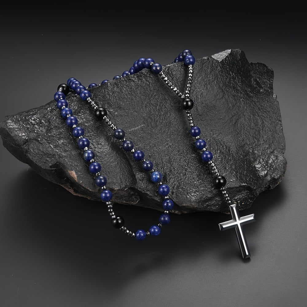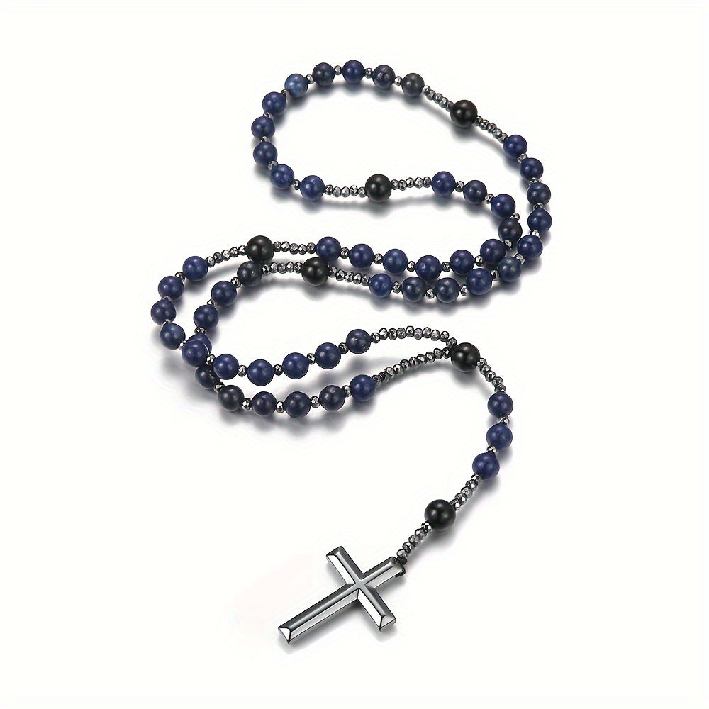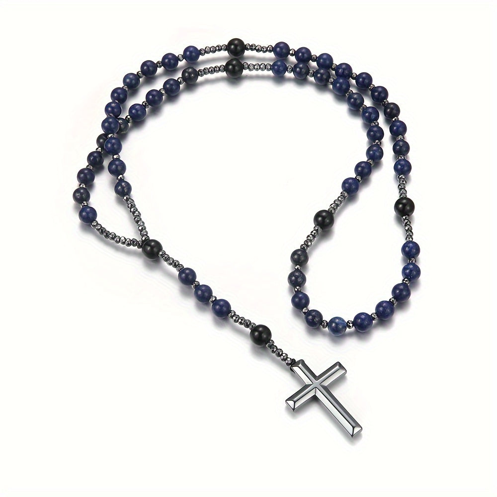 Men's Stone Pendant Necklace 8mm Round Bead Chain Jewelry Gift