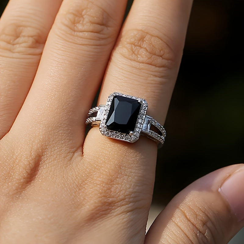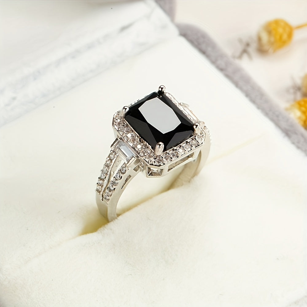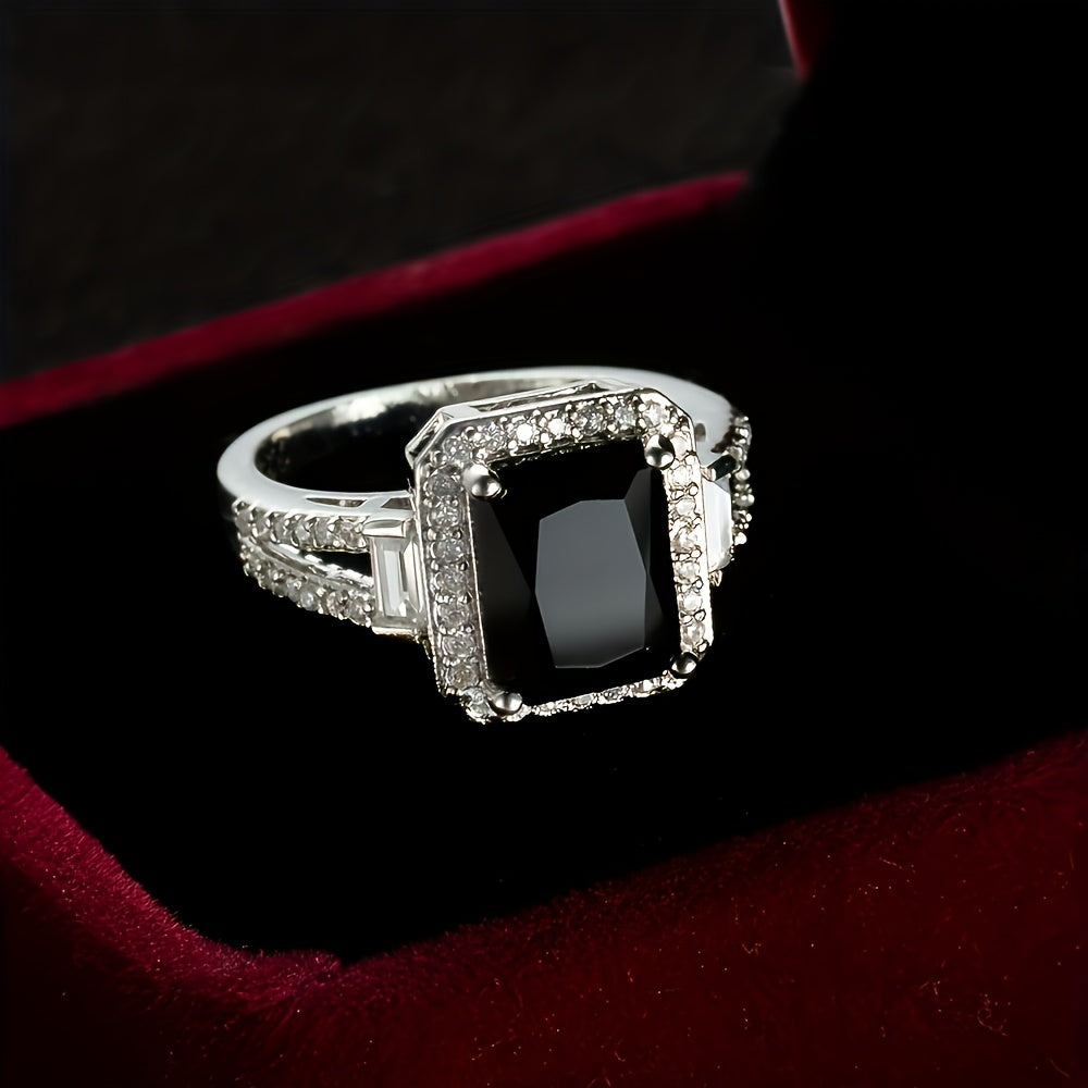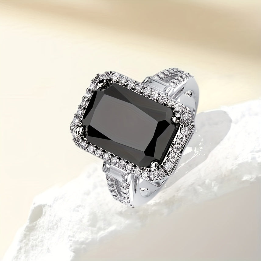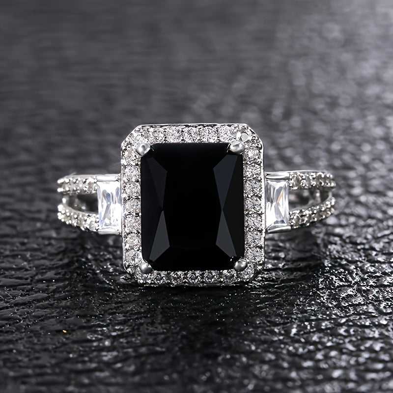Make a statement with this bold square ring featuring synthetic zirconia and clear accents. Perfect for edgy punk style and streetwear.