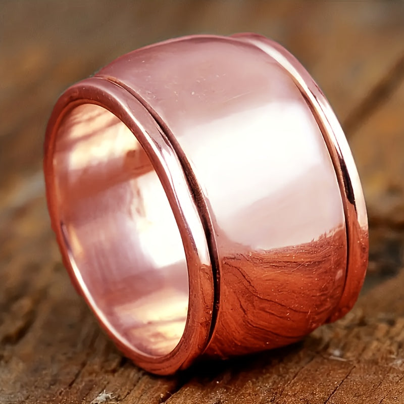 This band ring features a minimalist design with a wide polished surface, suitable for both men and women. Available in silvery, golden, and rose golden colors.