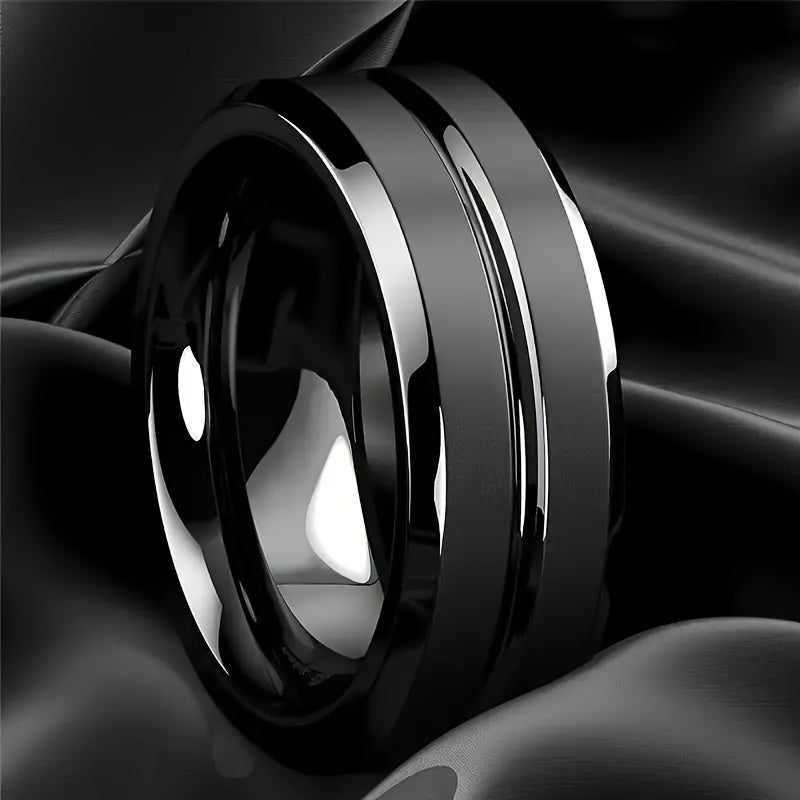 This men's ring is crafted from high-quality 304 stainless steel with a gun gray finish. Ideal for weddings, engagements, anniversaries, or as a birthday gift.