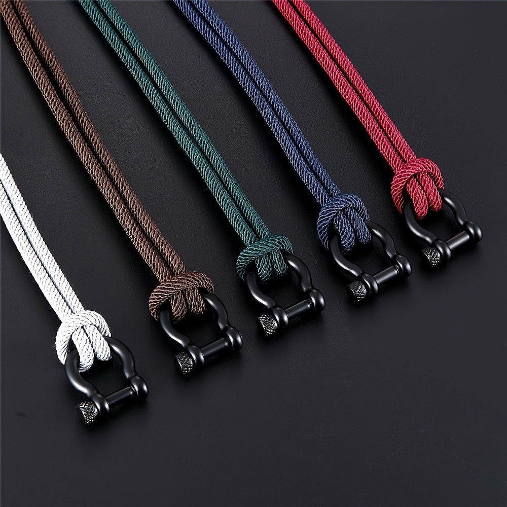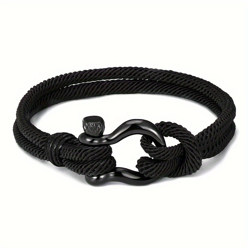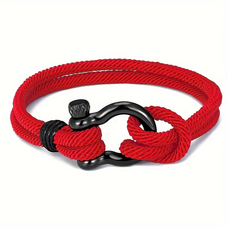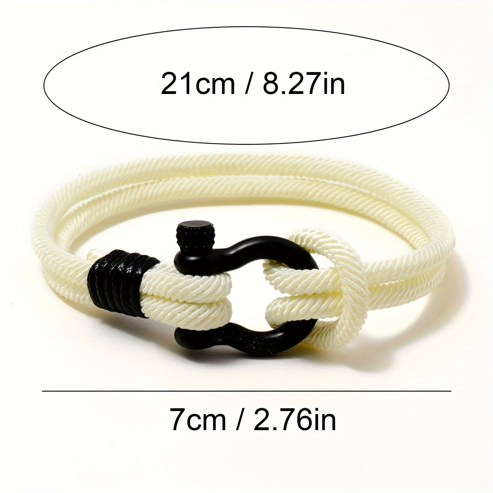 This nautical sailor rope wrap bracelet features a marine anchor shackle design. It is a stylish accessory that adds a touch of maritime flair to any outfit.
