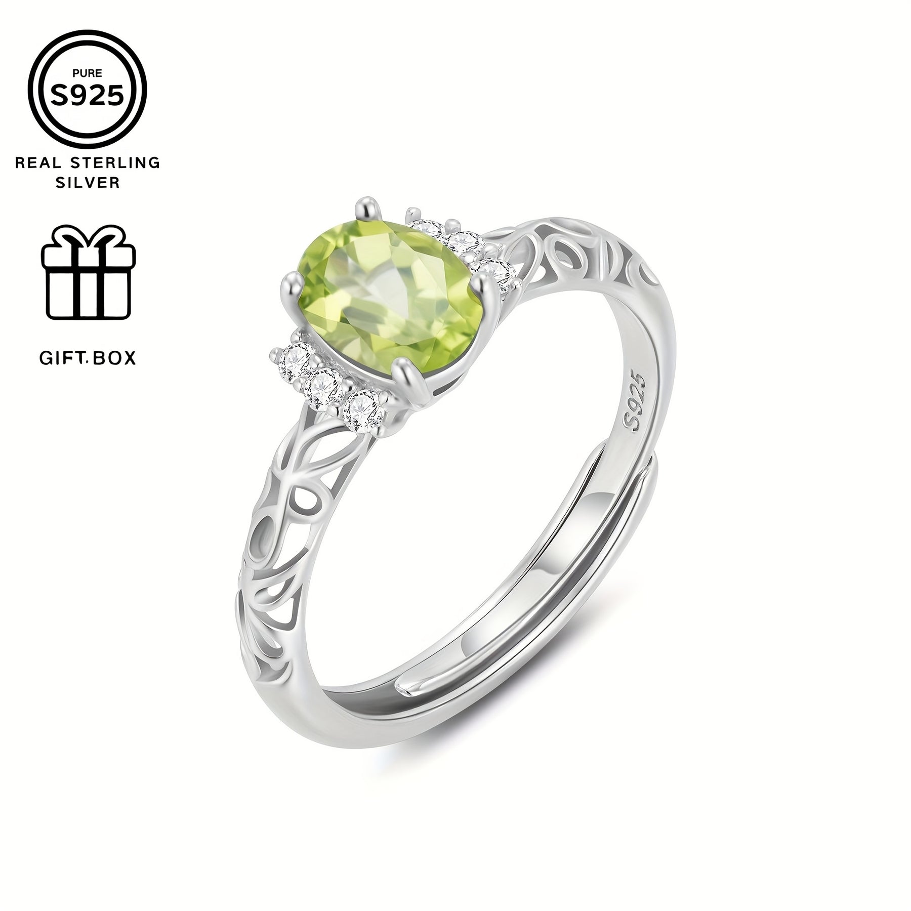 Odek S925 Sterling Silver Adjustable Ring with August Birthstone