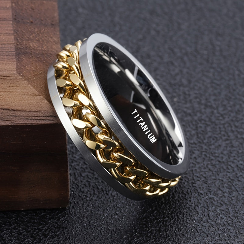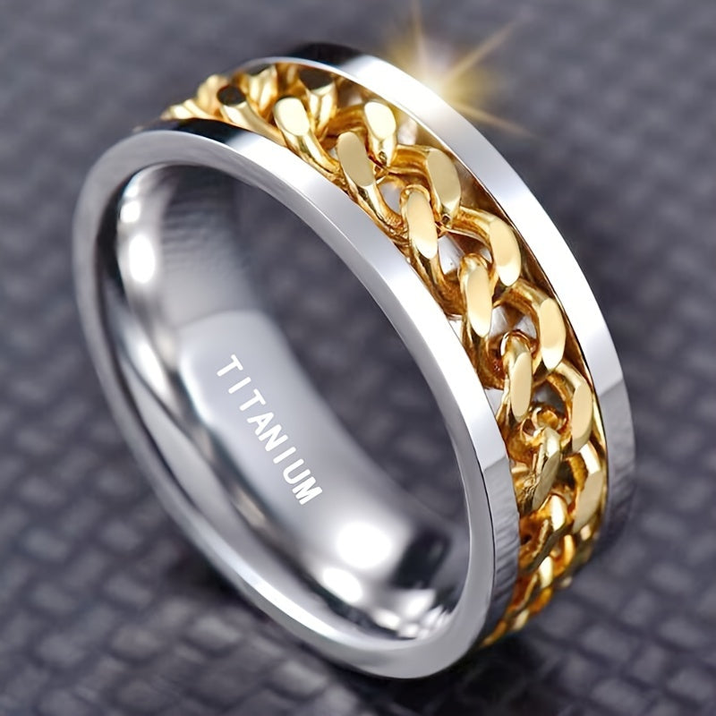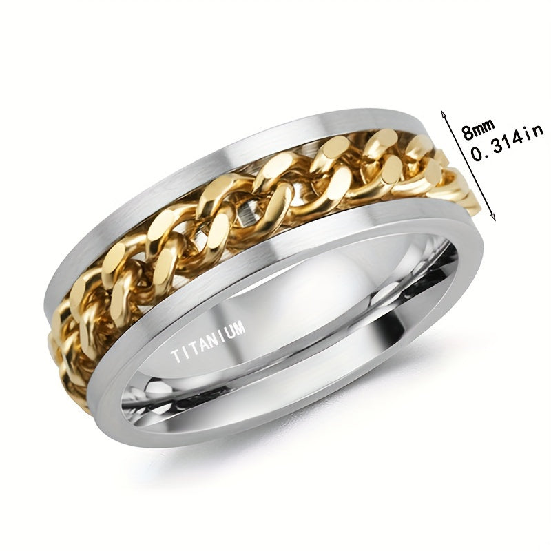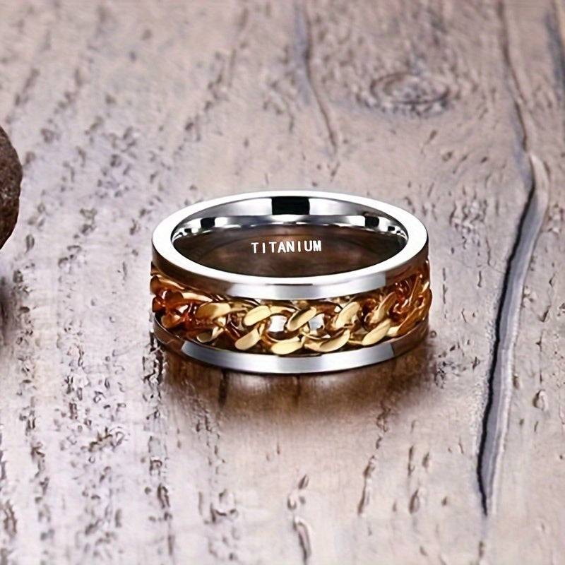 Elegant unisex jewelry accessory featuring 8mm titanium steel ring with synthetic zirconia chain band. Perfect for casual wear.