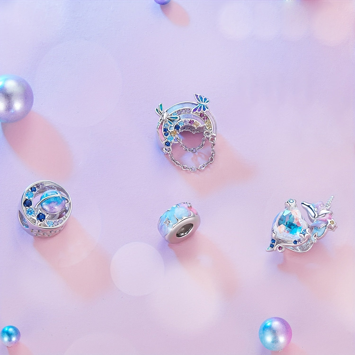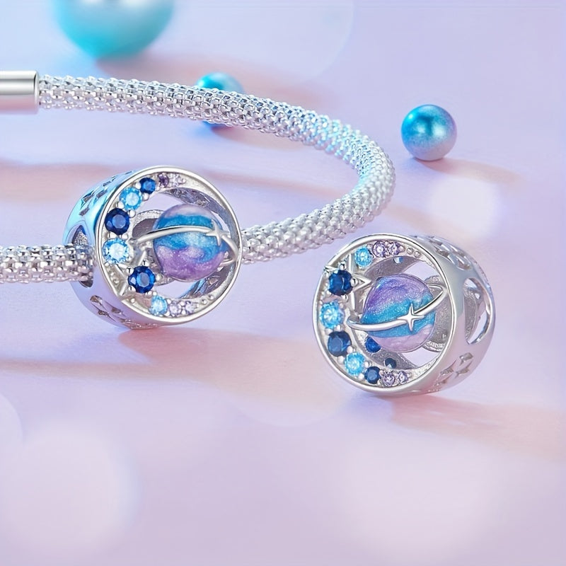 Elevate your jewelry collection with these stunning PANPOKI 925 Sterling Silver Dreamy Ocean Series beads featuring a dream planet pattern and rhinestone accents. Perfect for DIY bracelets and necklaces.