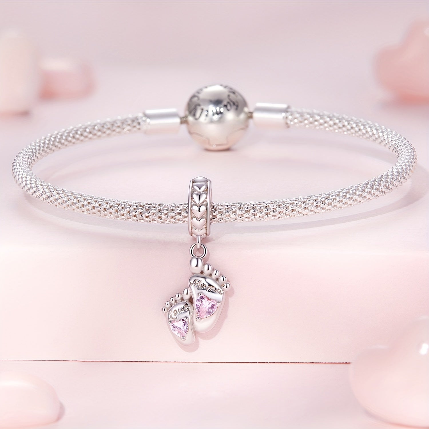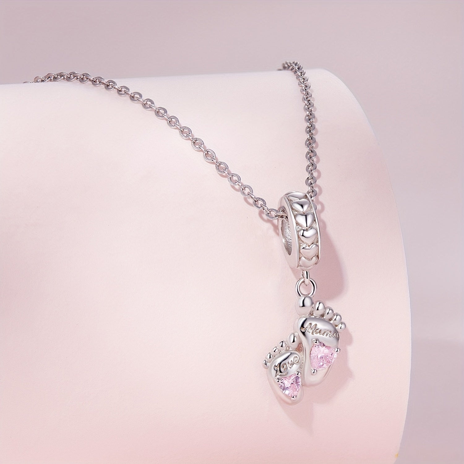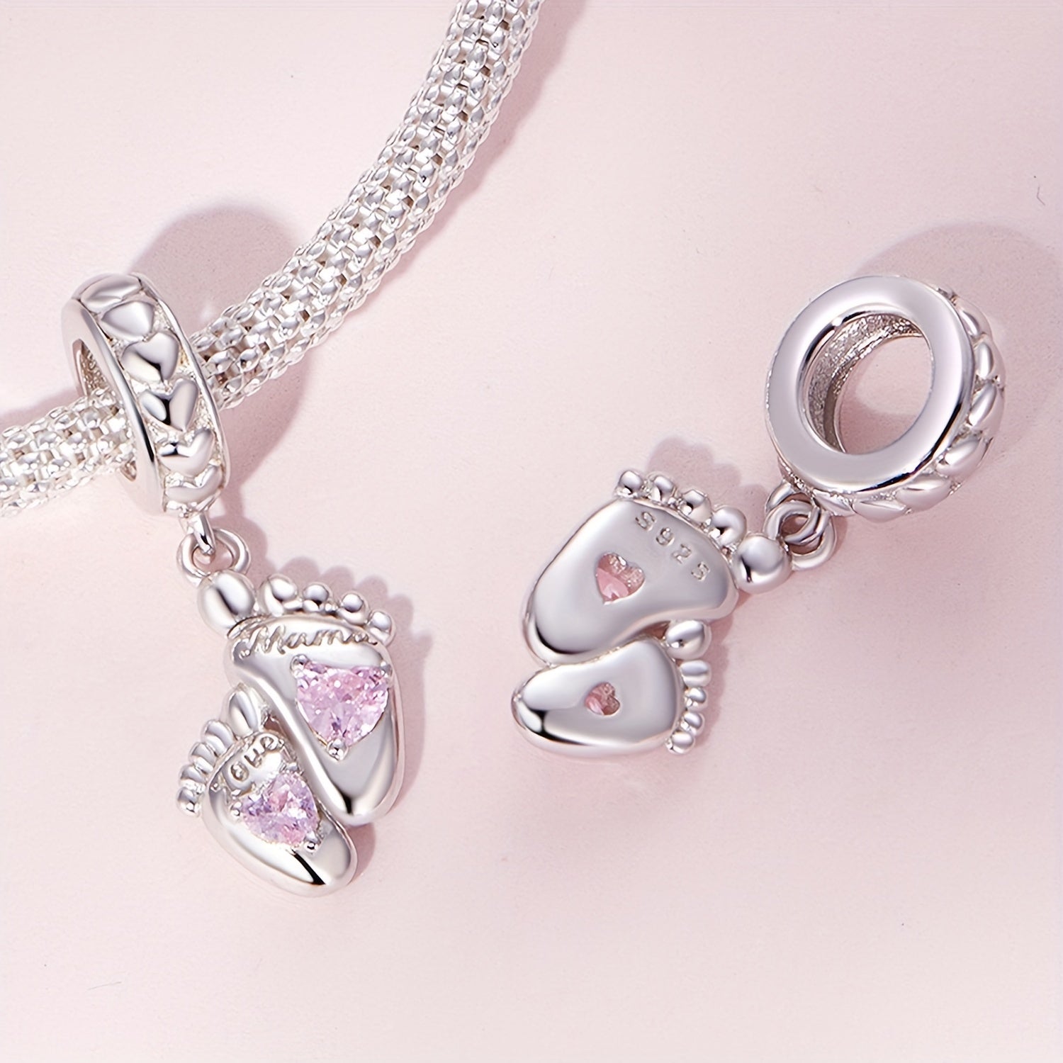 Express your love with this stunning 925 sterling silver footprints pendant. Ideal for women's DIY jewelry projects, this piece adds a touch of elegance and sentimentality.