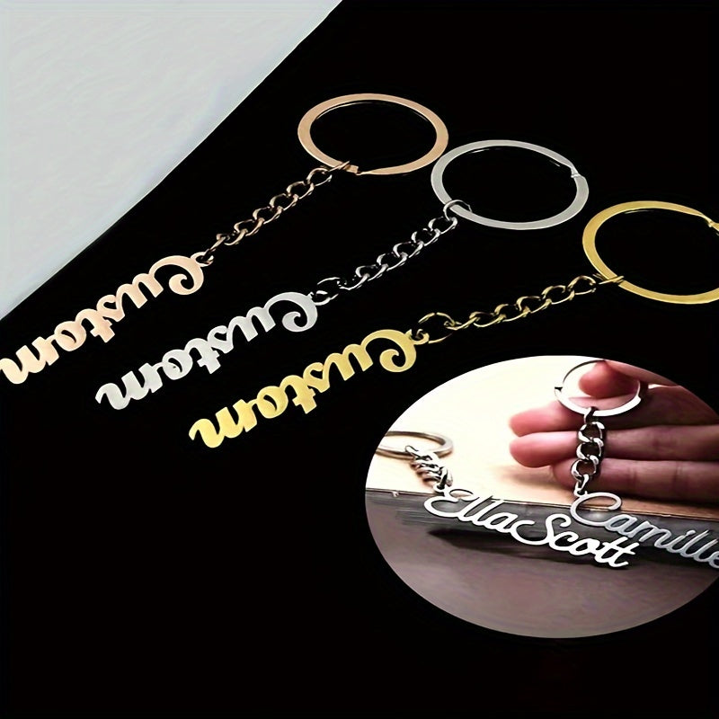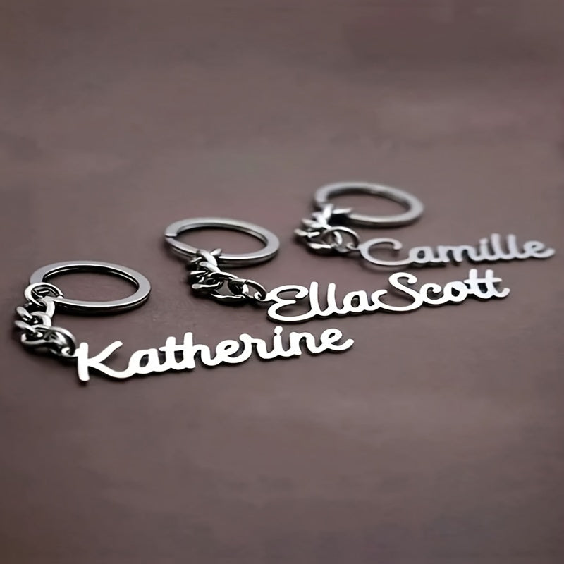Get this sleek and durable stainless steel keychain personalized with a custom name tag. The perfect gift for yourself or a loved one. Comes with a sturdy chain.