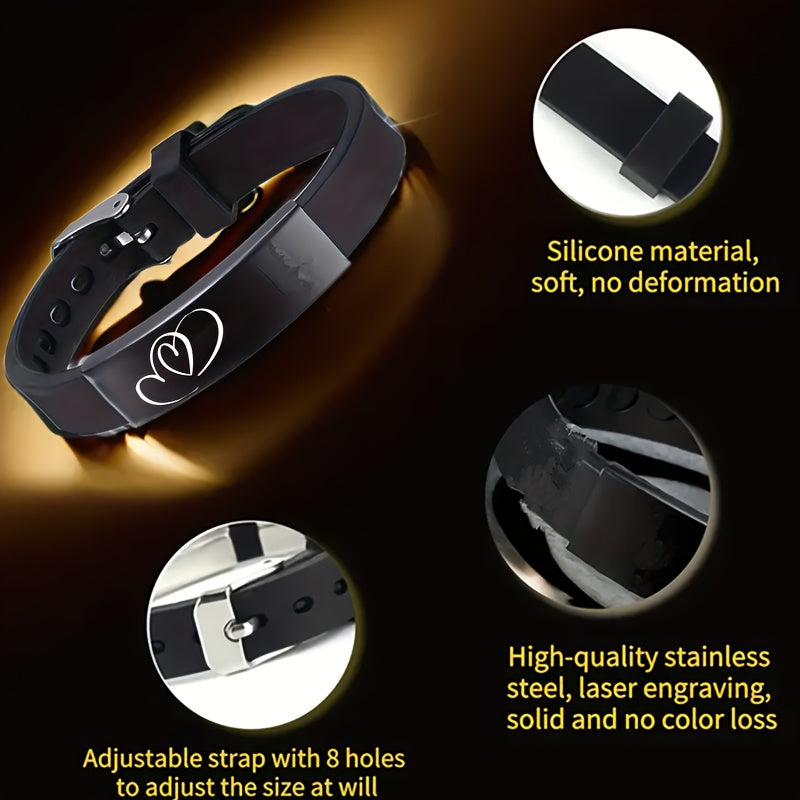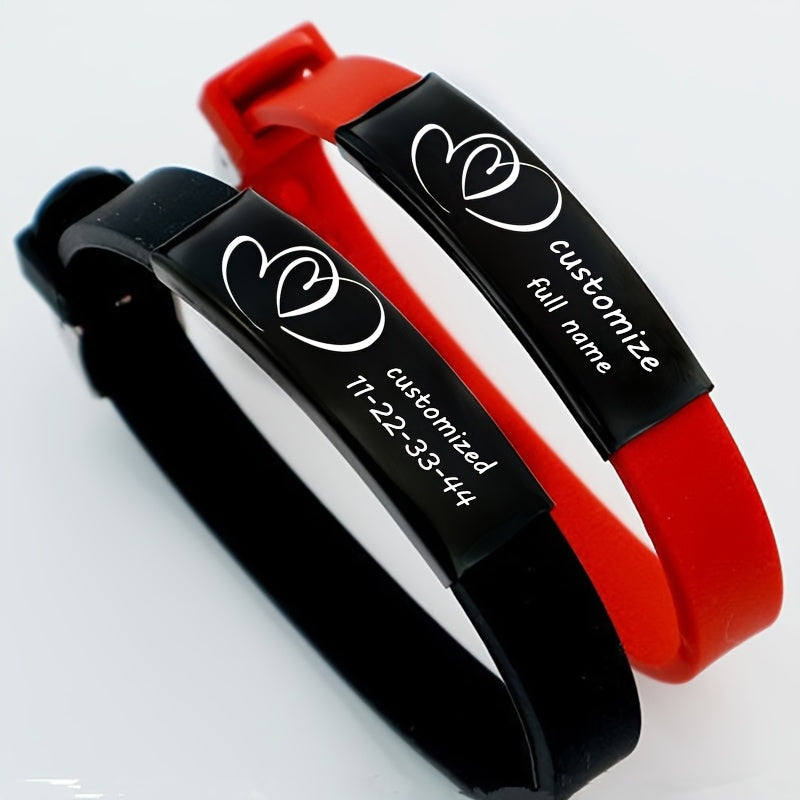 This silicone bracelet is a perfect gift for Valentine's Day, birthdays, or anniversaries. Customize it with a special name or date to show your love and commitment. Made from durable materials, this bracelet is suitable for both men and women.