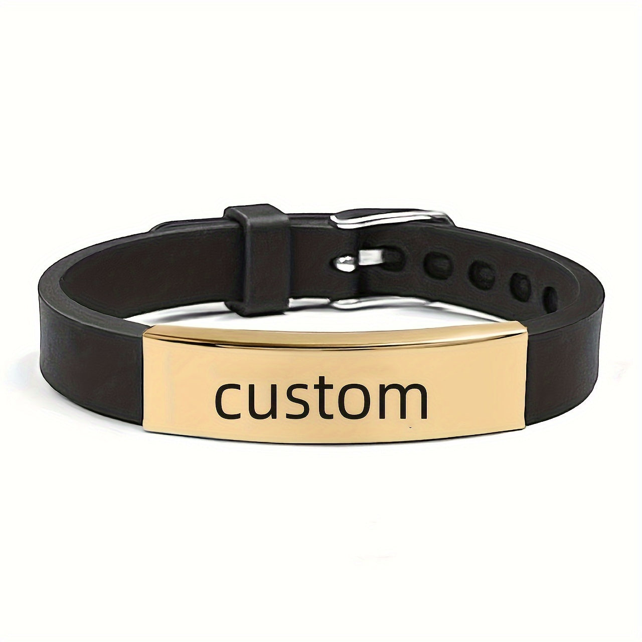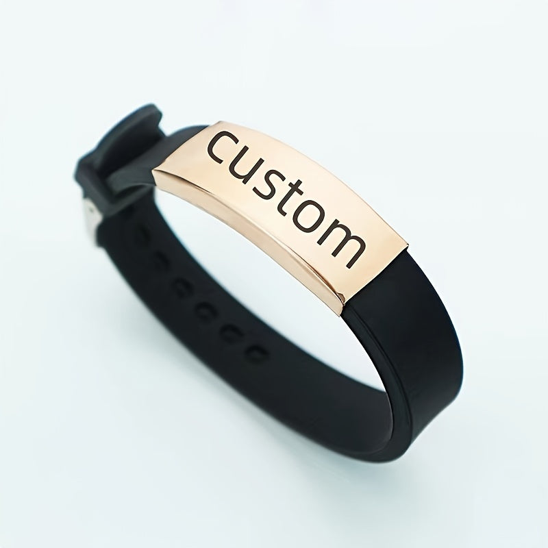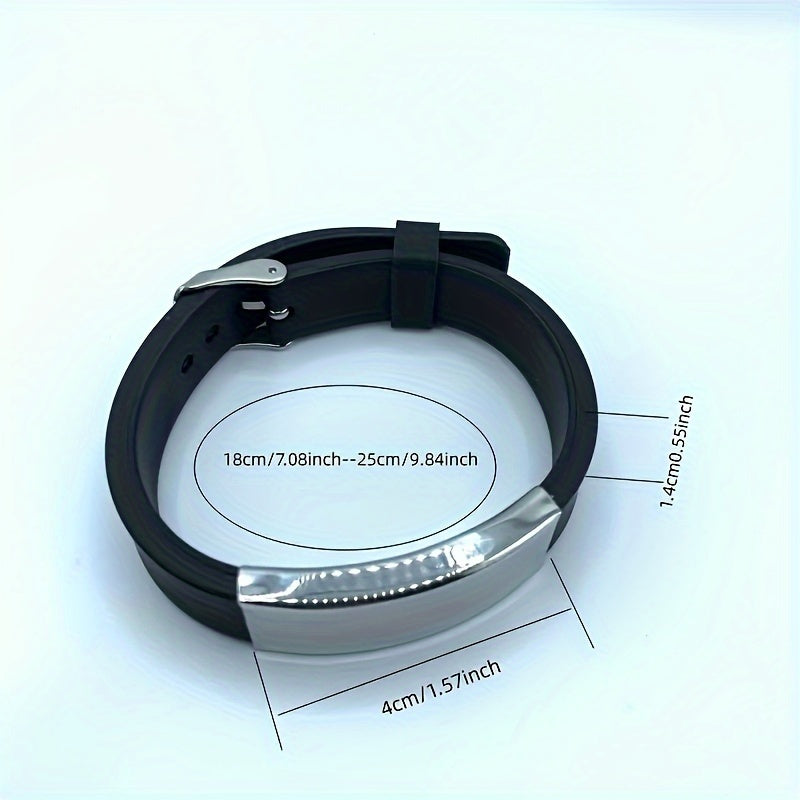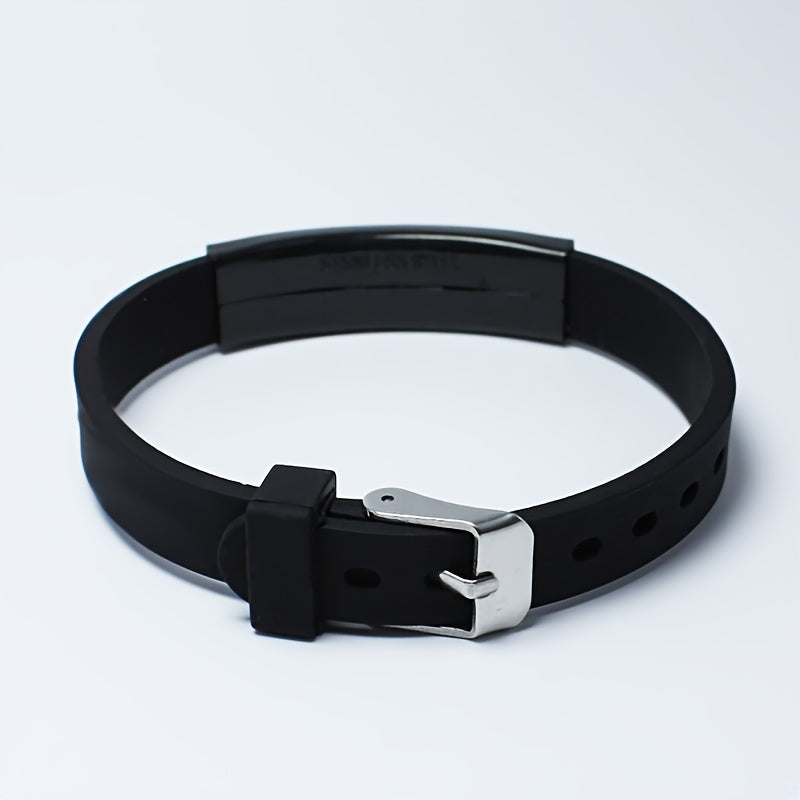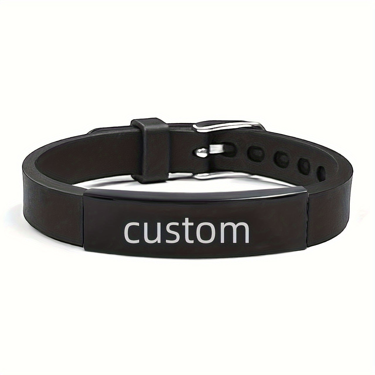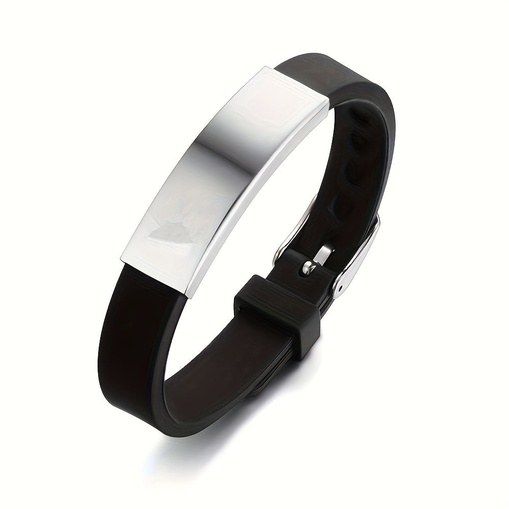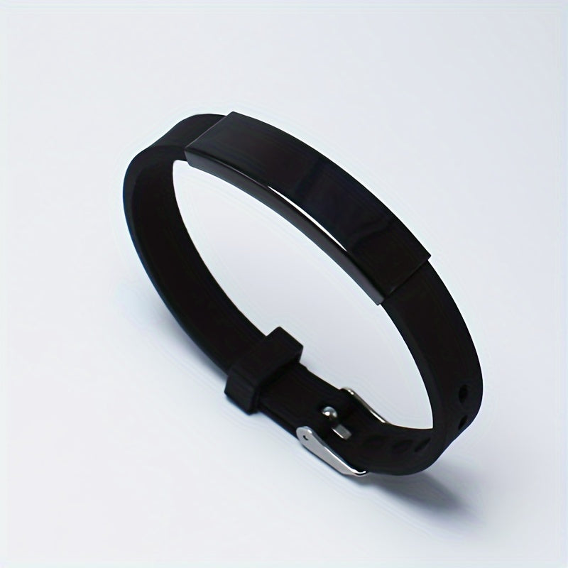 This silicone wristband features a durable stainless steel adjustable buckle and can be laser engraved with your name or ID for a custom touch. It is a comfortable and stylish accessory for men.