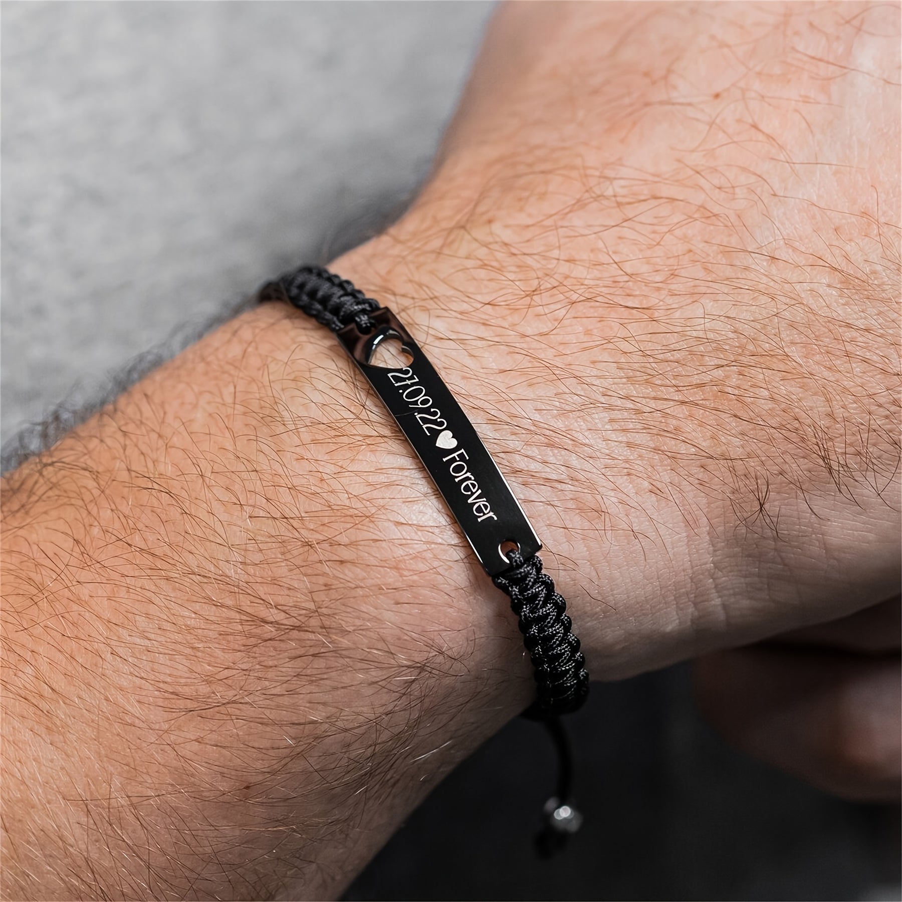 Personalized Stainless Steel Bracelet Custom Engraved Name & Date