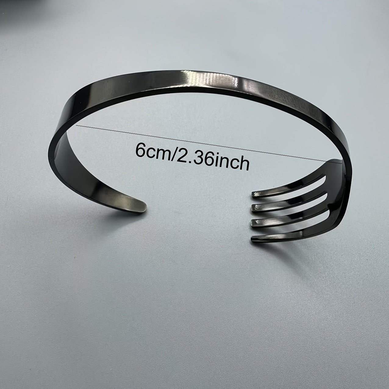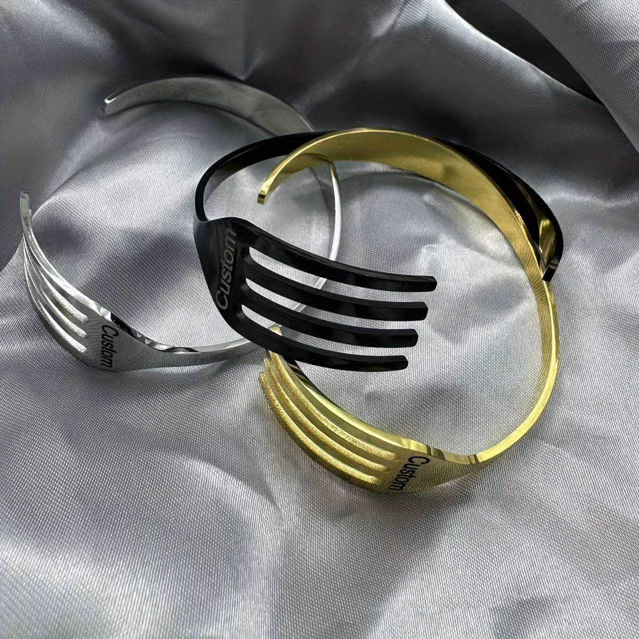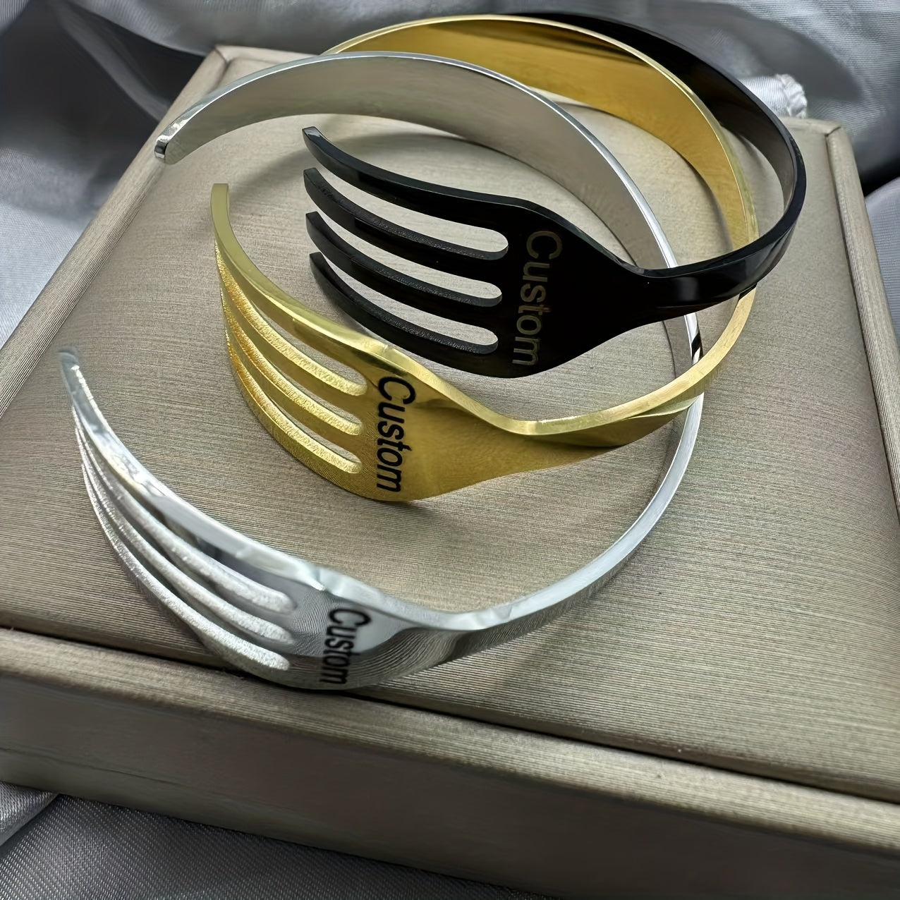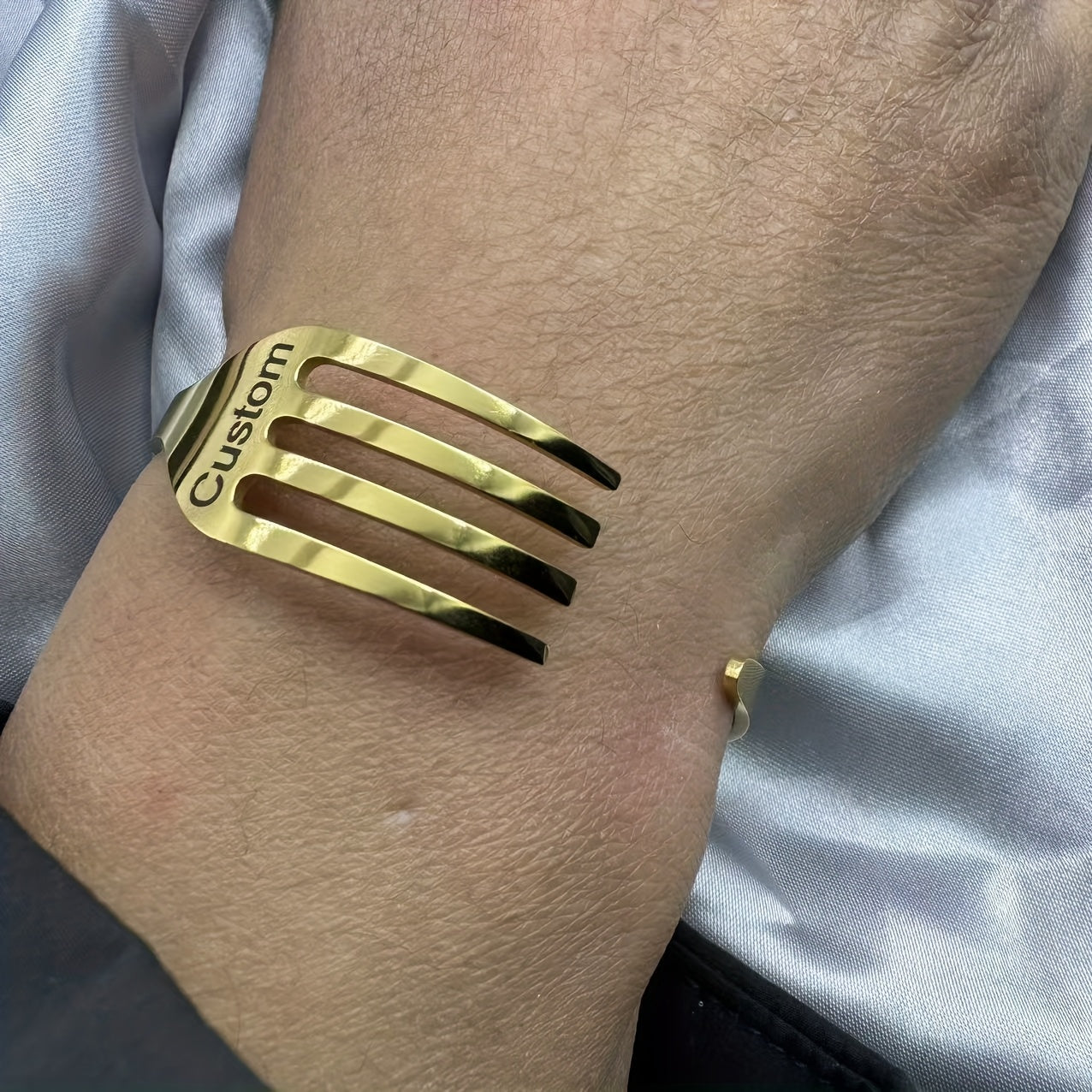 This sleek and modern fork bracelet is a stylish daily wear accessory for men and women. Customize it with your own engraving for a unique touch.