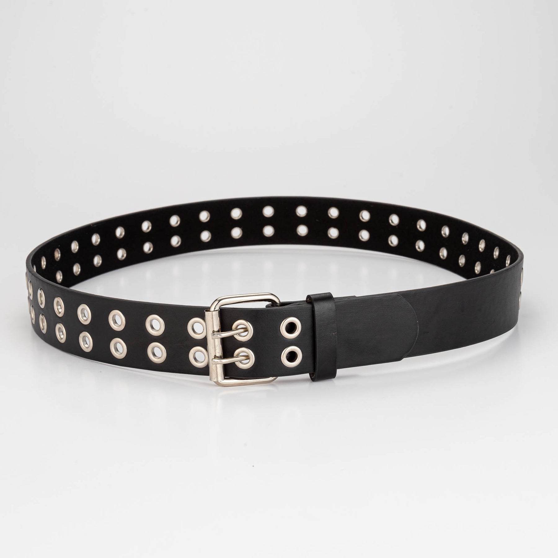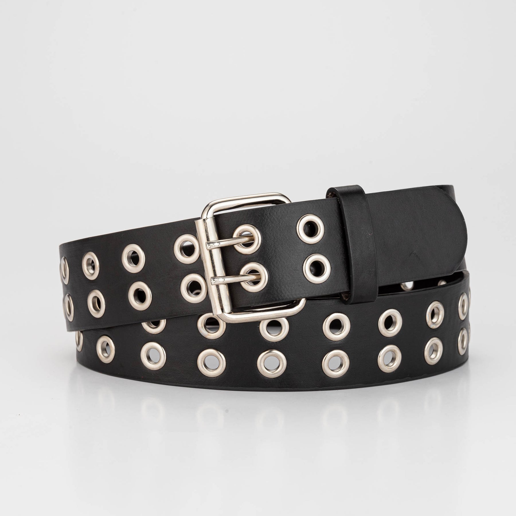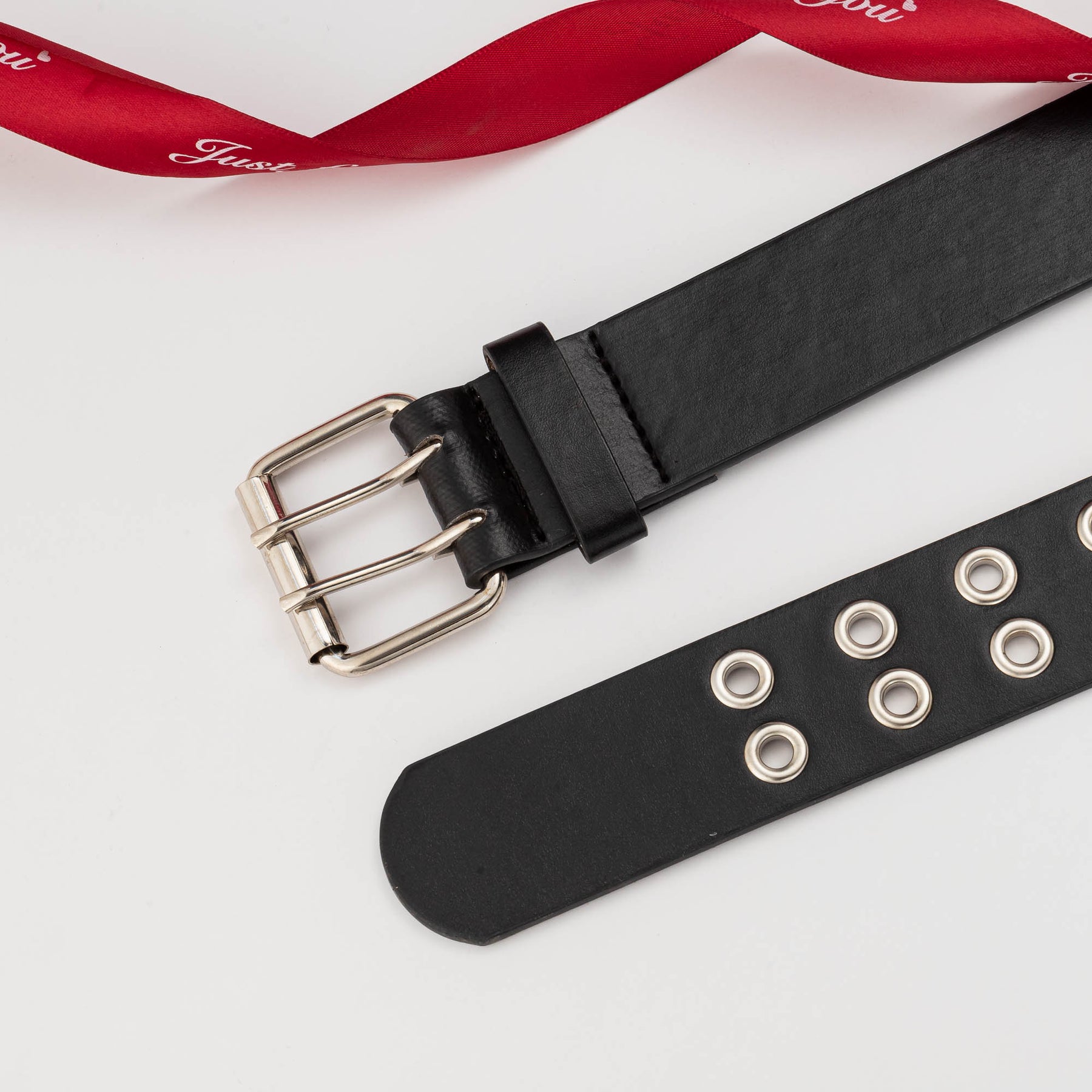 PU Leather Double Breasted Eyelet Stitch Belt For Jeans Pants