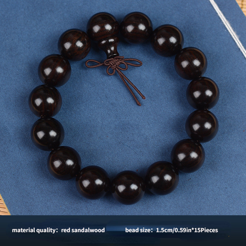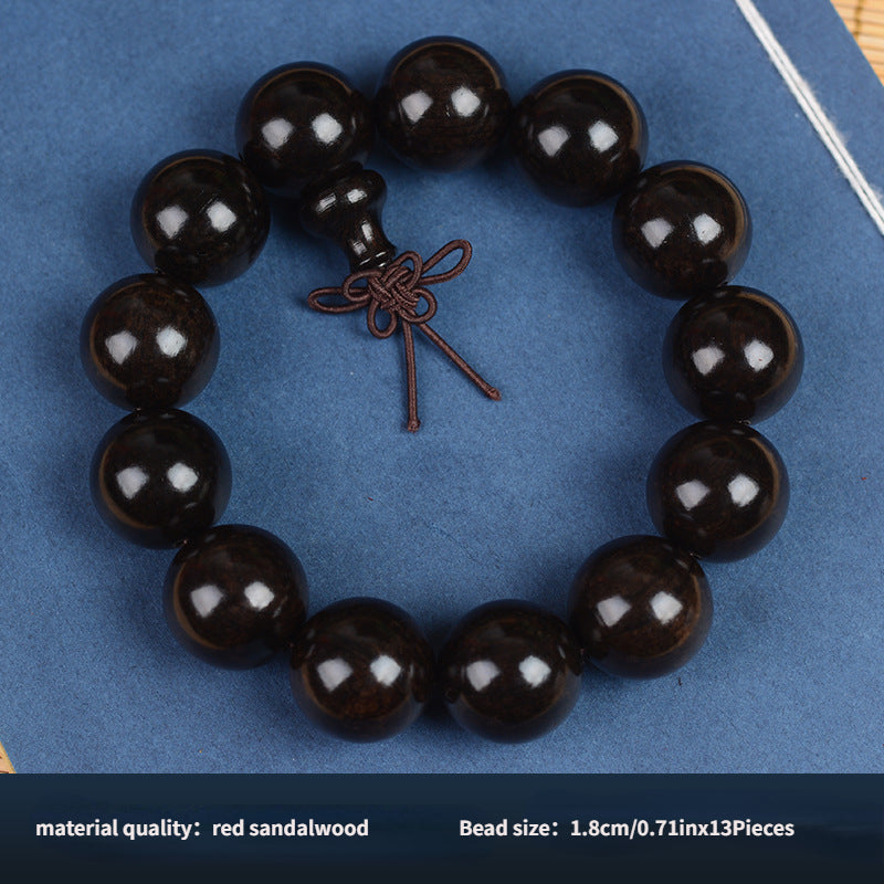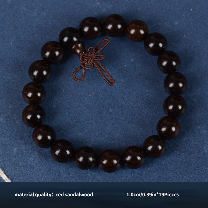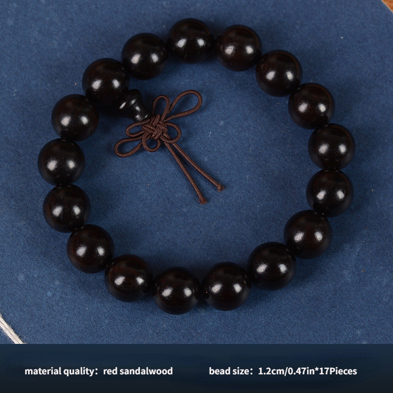 Beautiful bracelet featuring 108 sandalwood prayer beads in purple light sandalwood, ebony, and red colors. Ideal for cultural practices and as a toy.