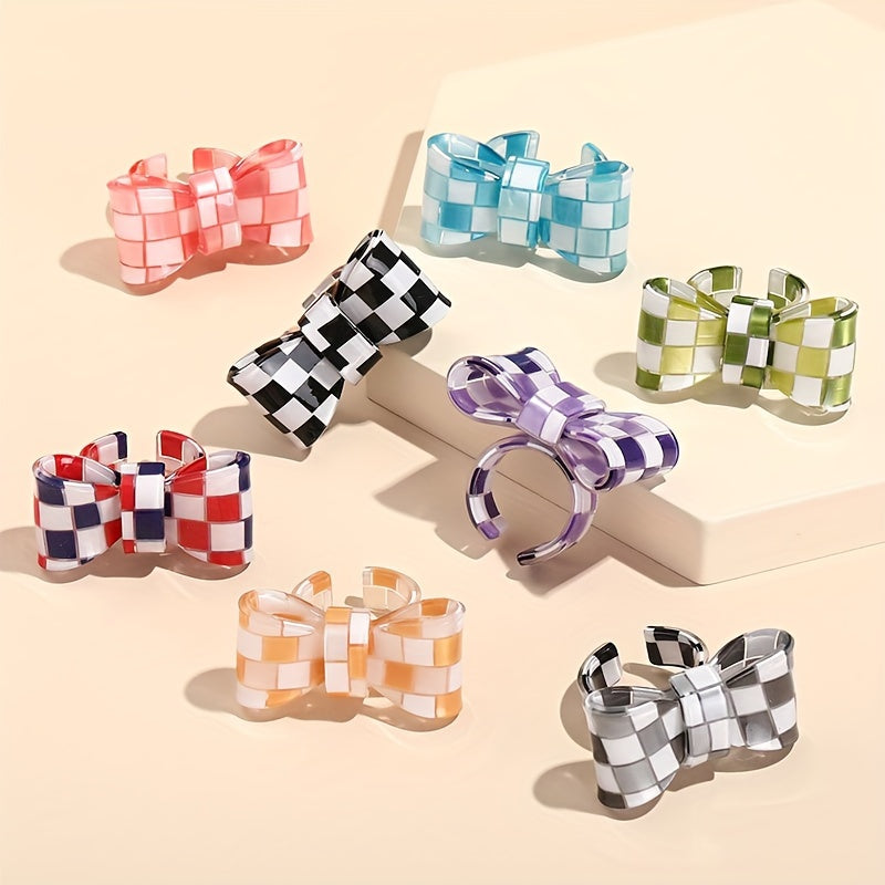 Elevate your style with these chic resin bowknot rings, perfect for music festivals and special occasions. Gift-ready for fashion-forward women.