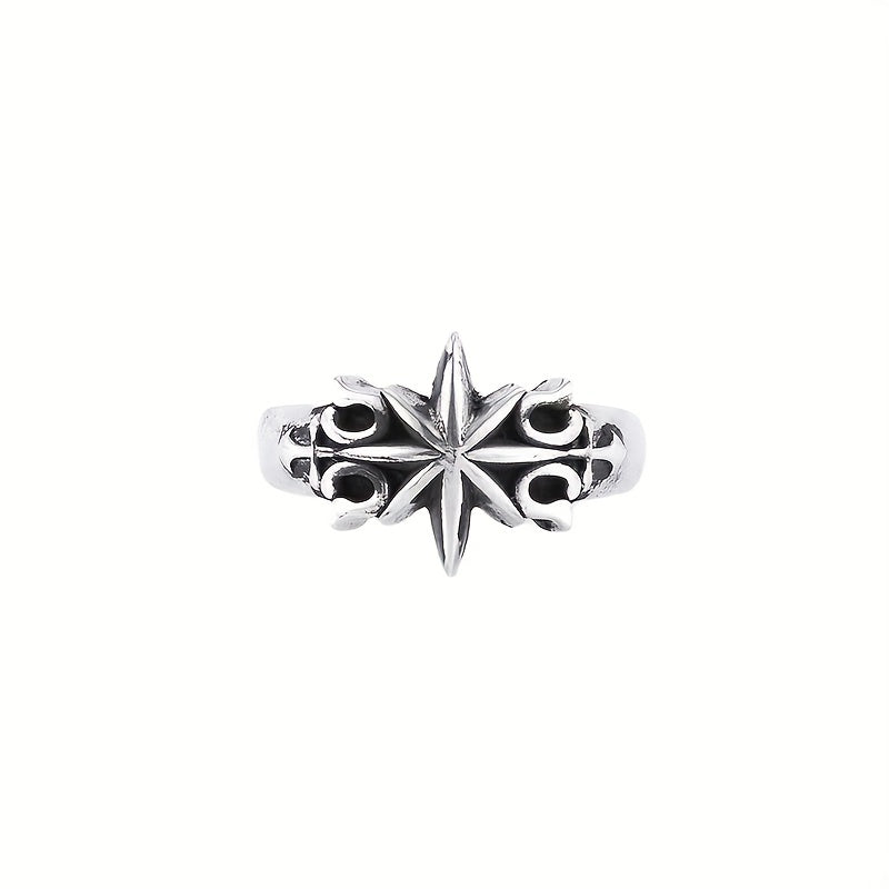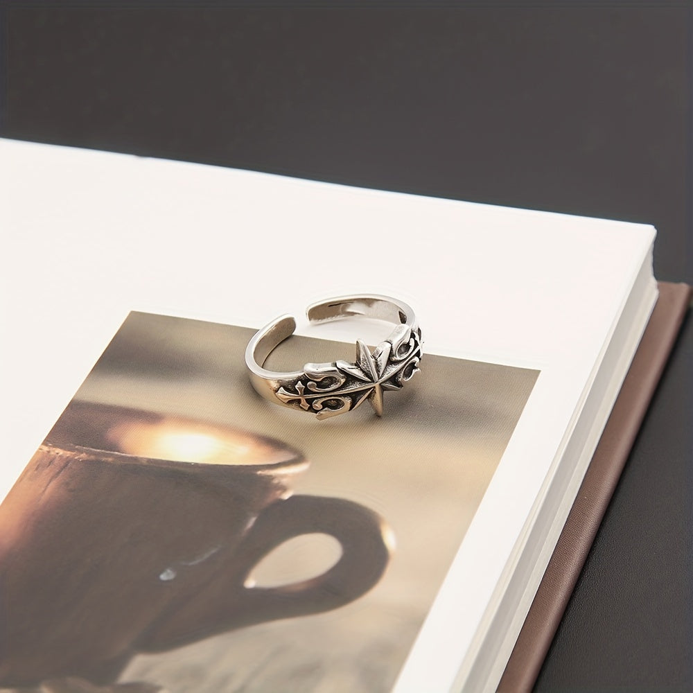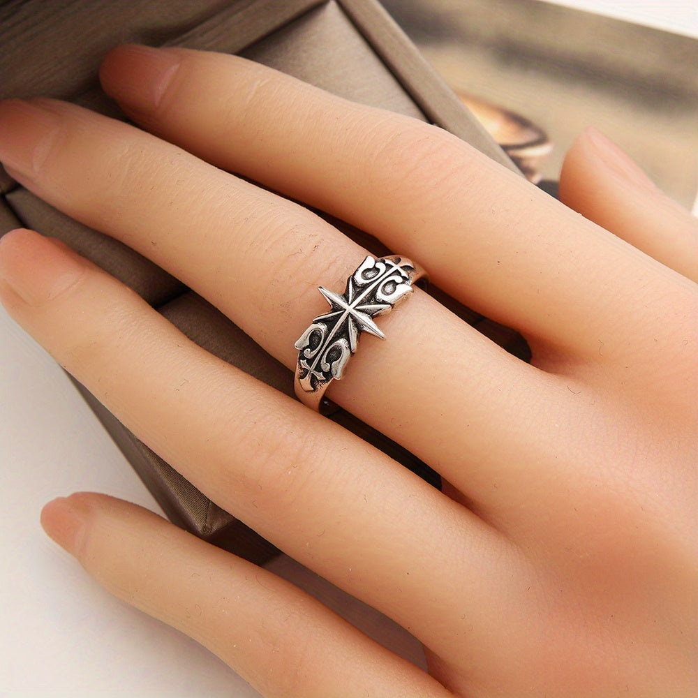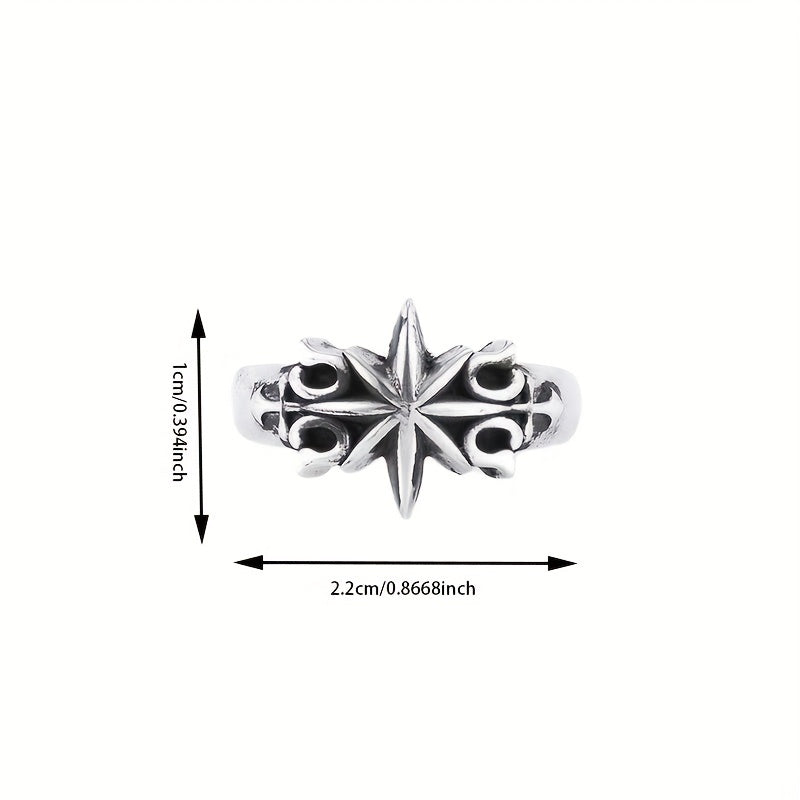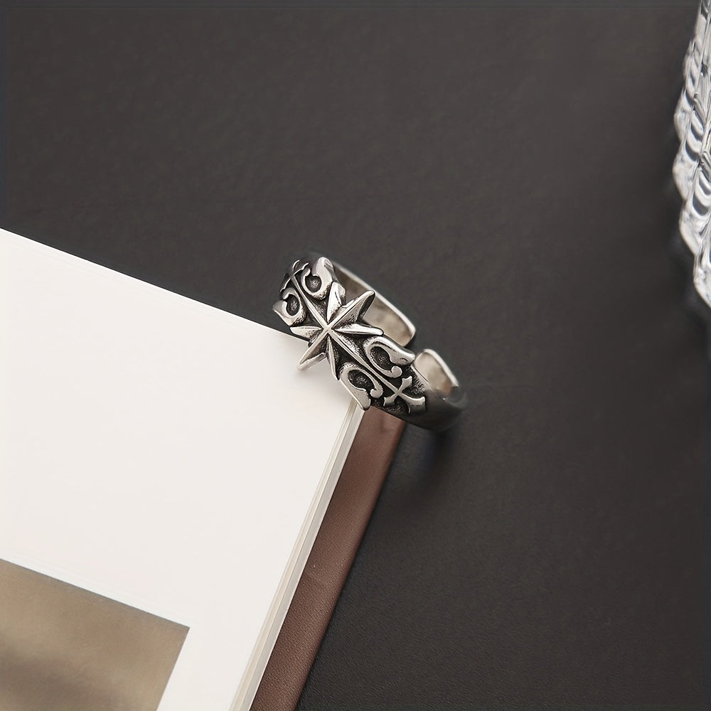 This retro hexagram ring is a niche jewelry piece for men. It features an ancient silvery design and is adjustable to fit various sizes.