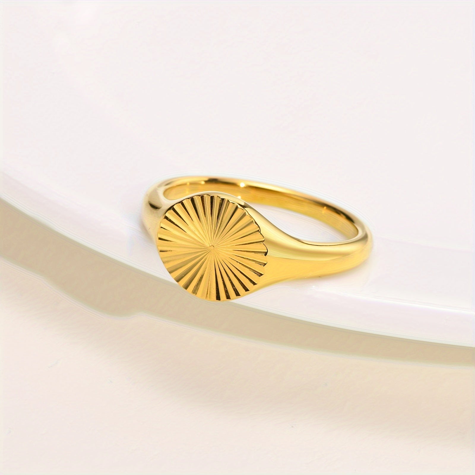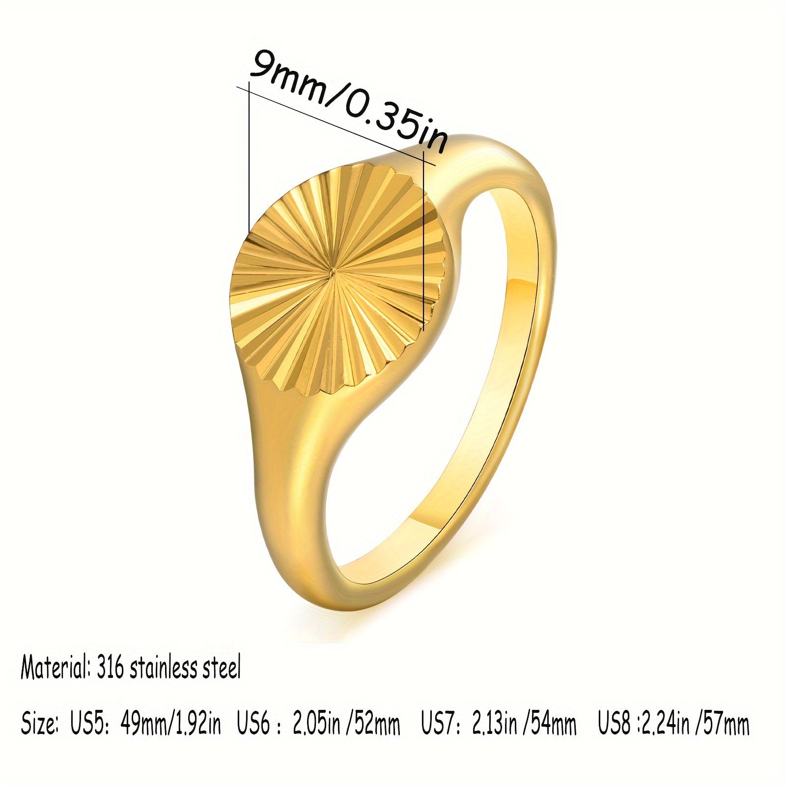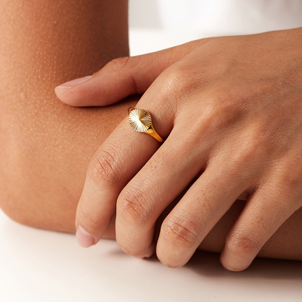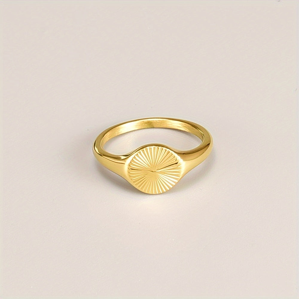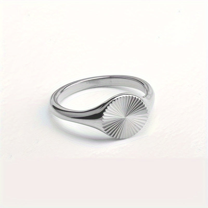 Stylish stainless steel ring with sunburst design and innovative features that won't fade over time.