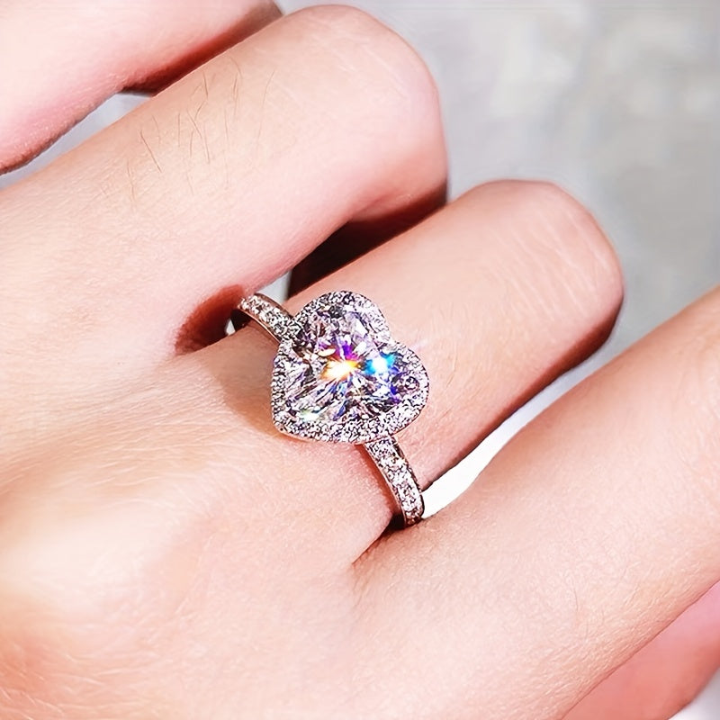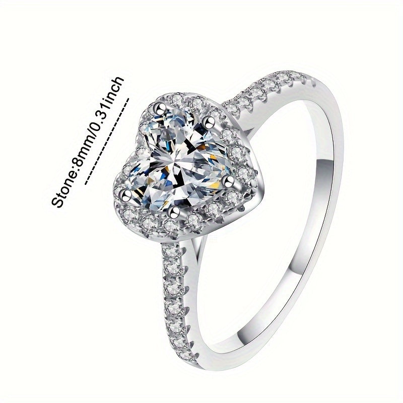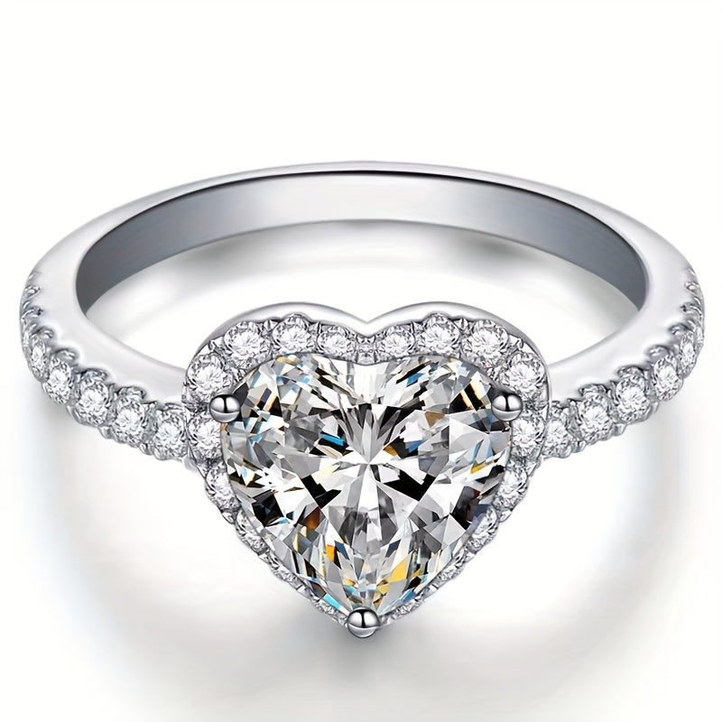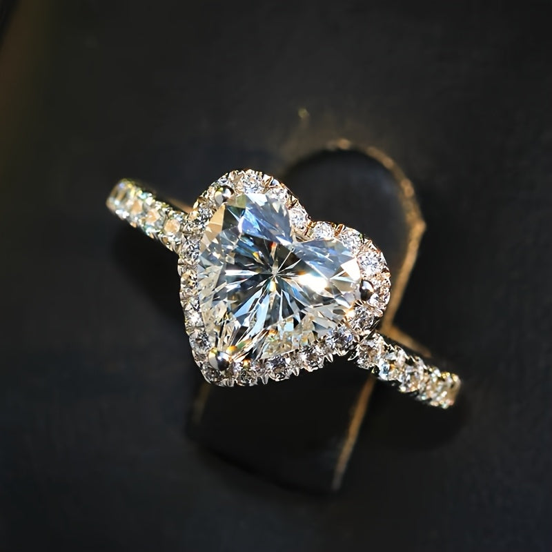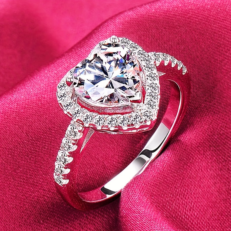 This beautiful heart-shaped engagement ring features sparkling synthetic cubic zirconia stones. It is hypoallergenic and perfect for weddings.