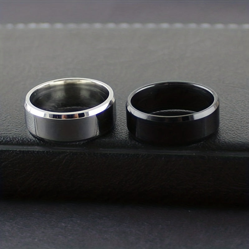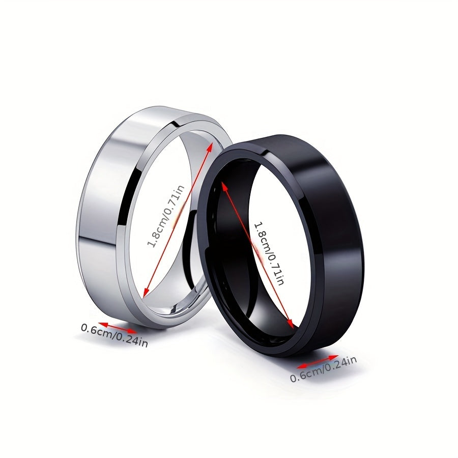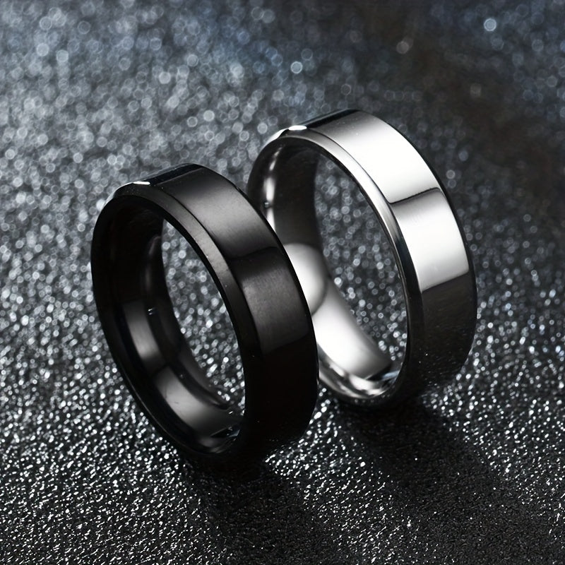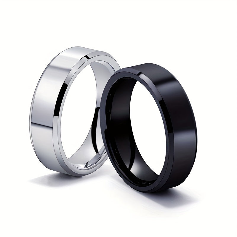This set includes 2pcs of men's stainless steel rings with a double bevel edge. Perfect for couples looking for matching rings. These simple and elegant plain rings are ideal for everyday wear.